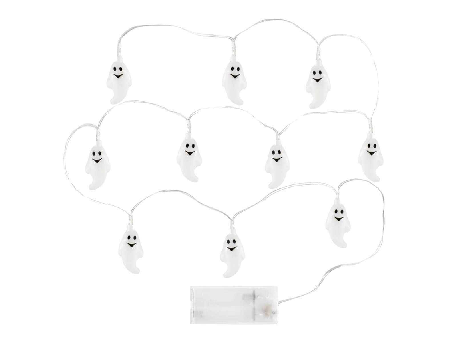 Ghirlanda are 10 lumini decorative în formă de fantome.