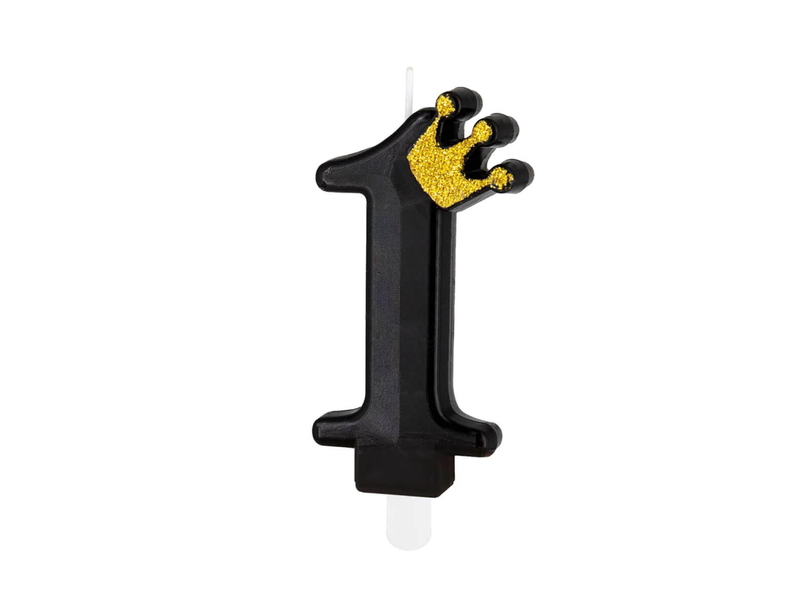 Lumânare numărul unu neagră cu coroană - 1 - 1 buc.