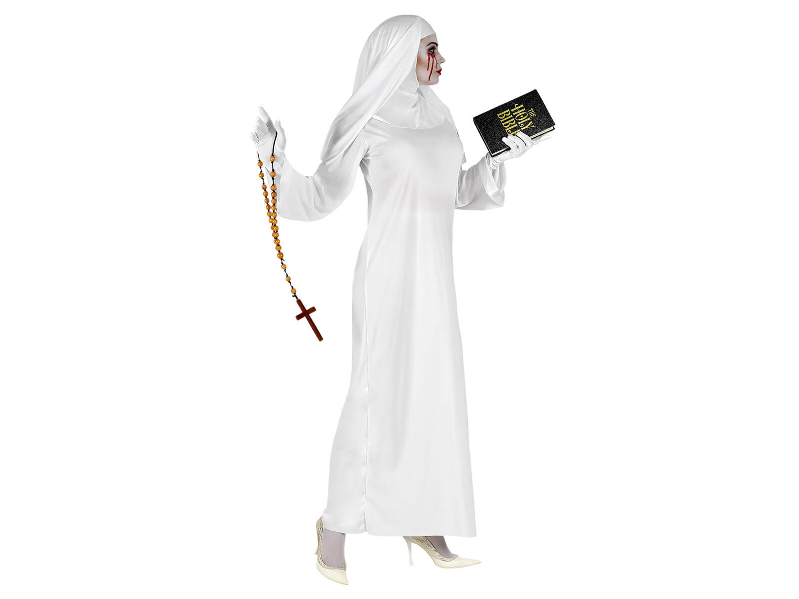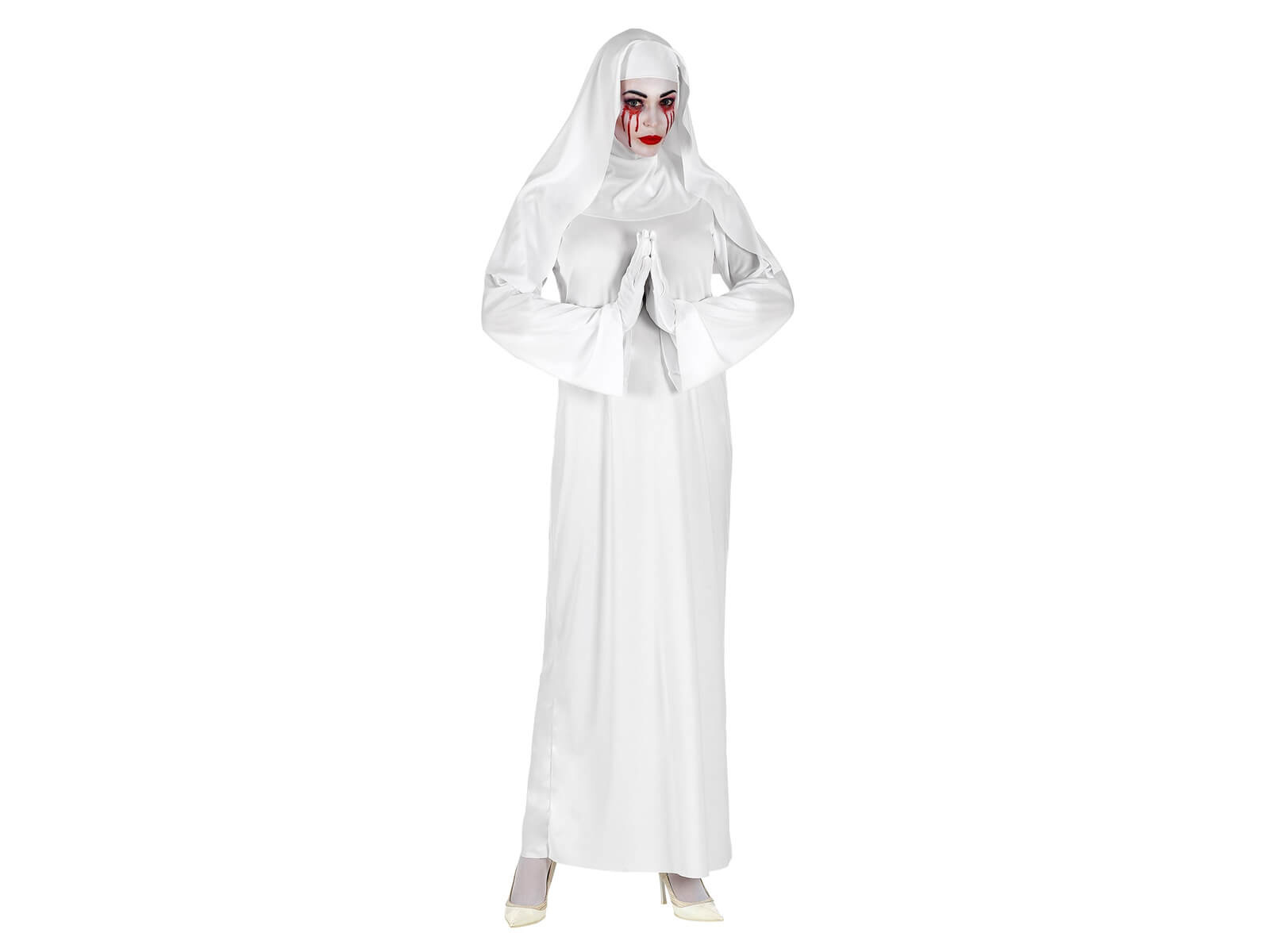 Încântă pe toată lumea de Halloween jucând rolul unei Călugărița Spooky. Acest costum unic pentru femeia XXL este alegerea perfectă pentru cei care doresc să surprindă și să sperie într-un mod elegant. Setul include obicei,voal și mănuși în alb, care împreună creează aspectul complet, autentic al unei călugărițe.