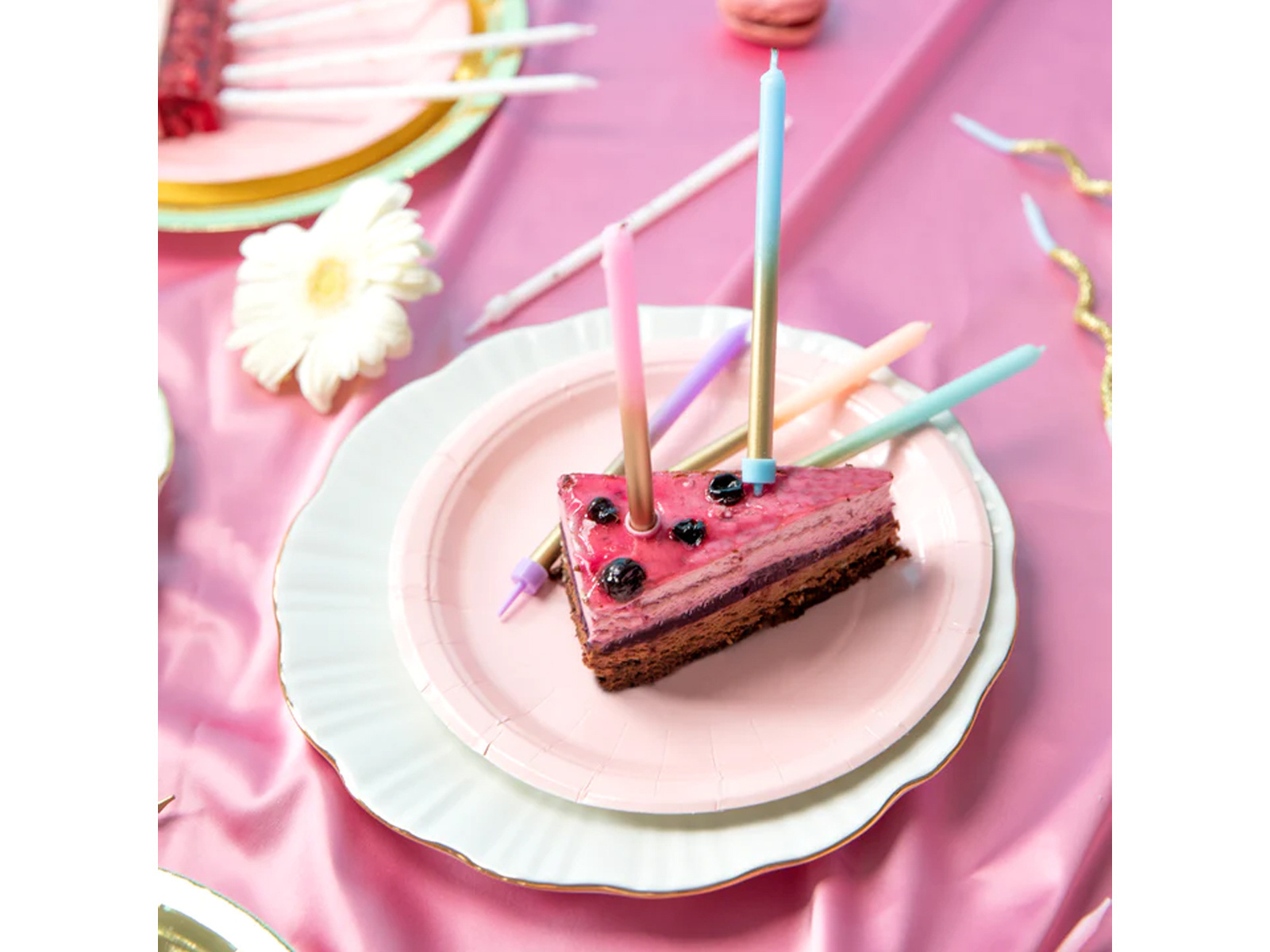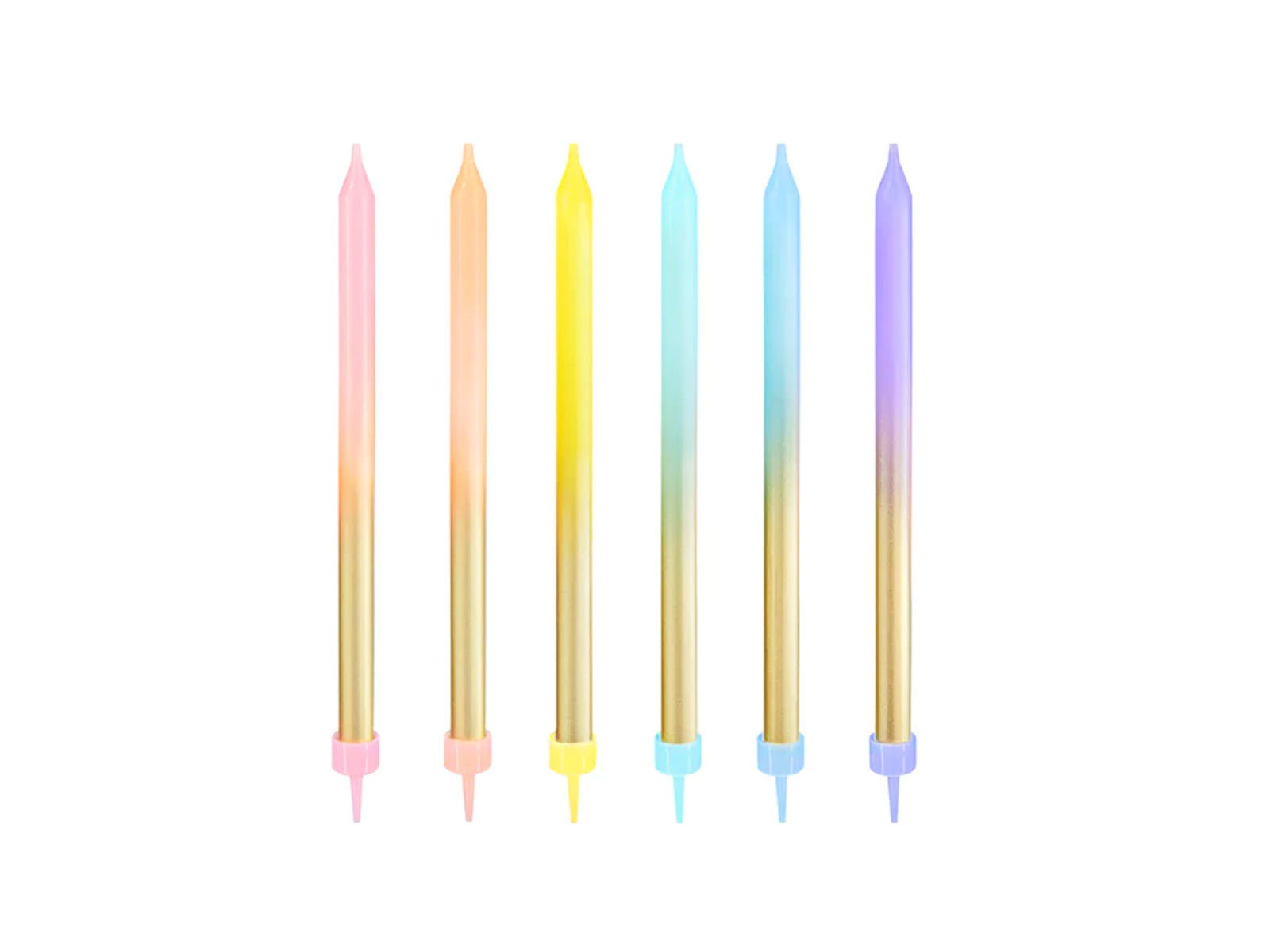 Lumânări aniversare curcubeu de aur - 12,5 cm - 6 buc.
