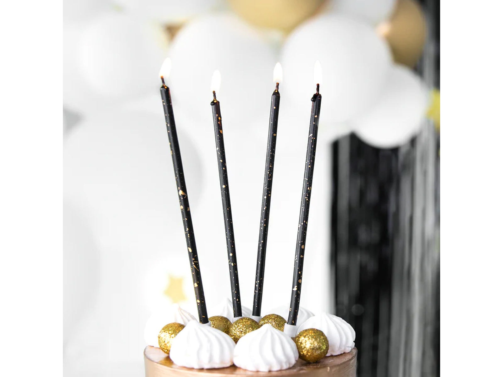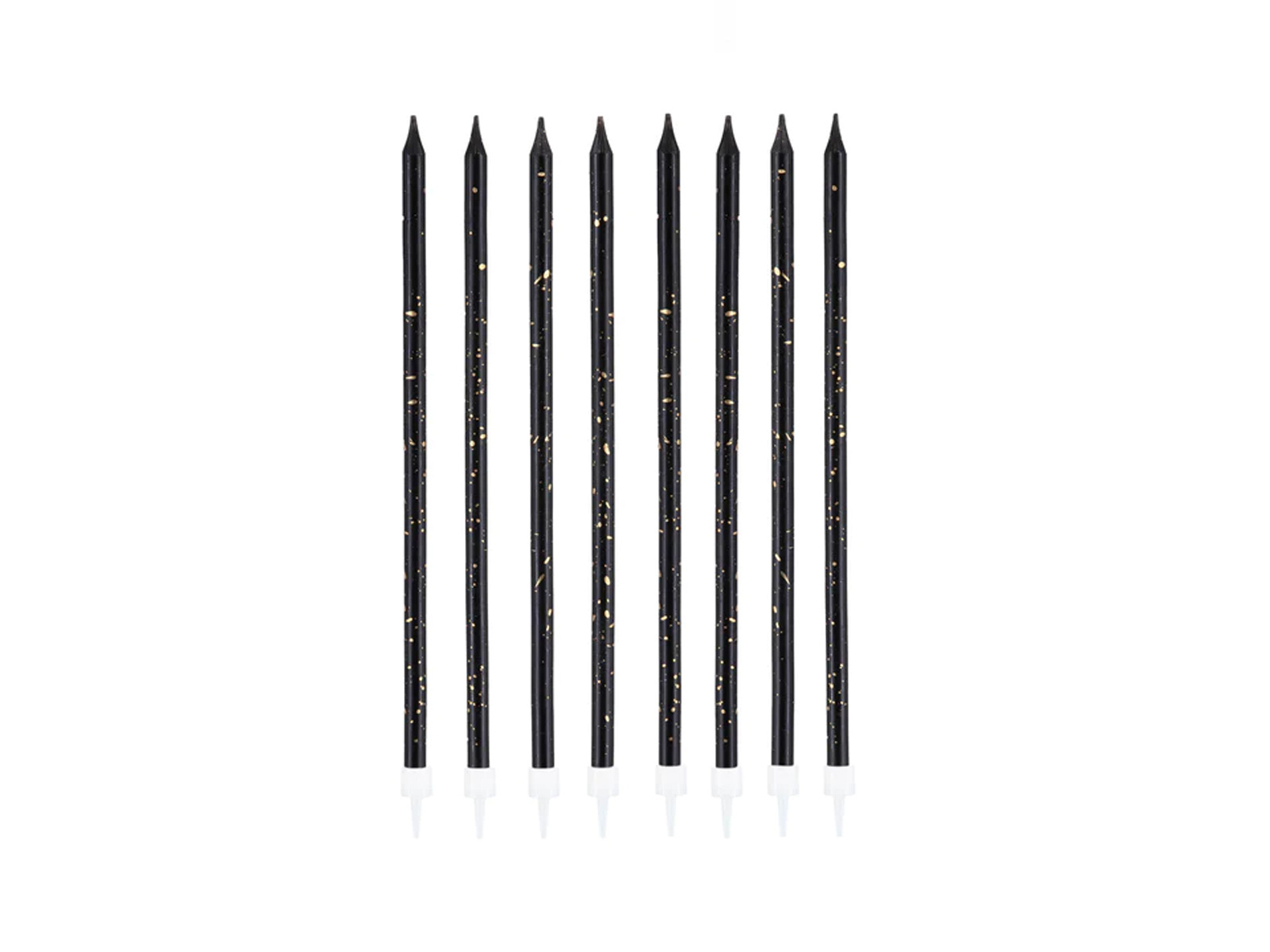 Lumânări lungi de aniversare negre și aurii - 15 cm - 8 buc.