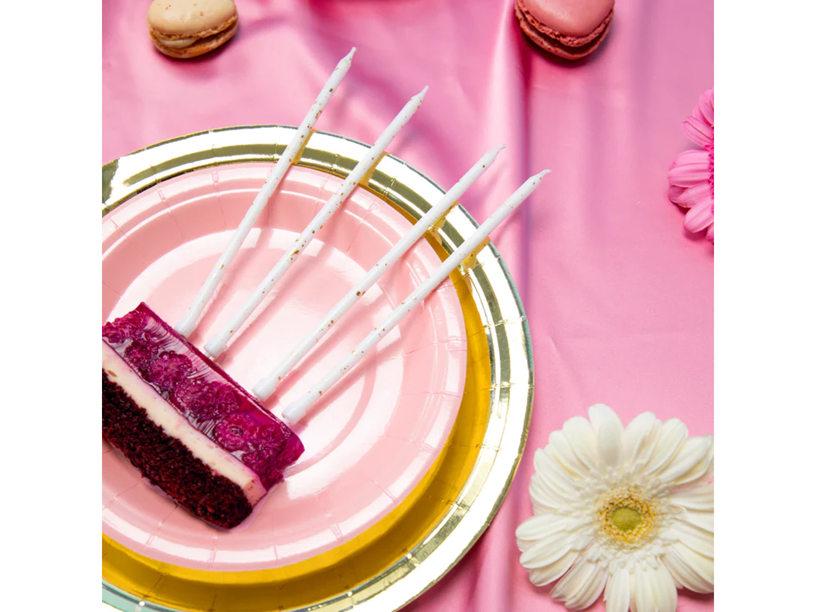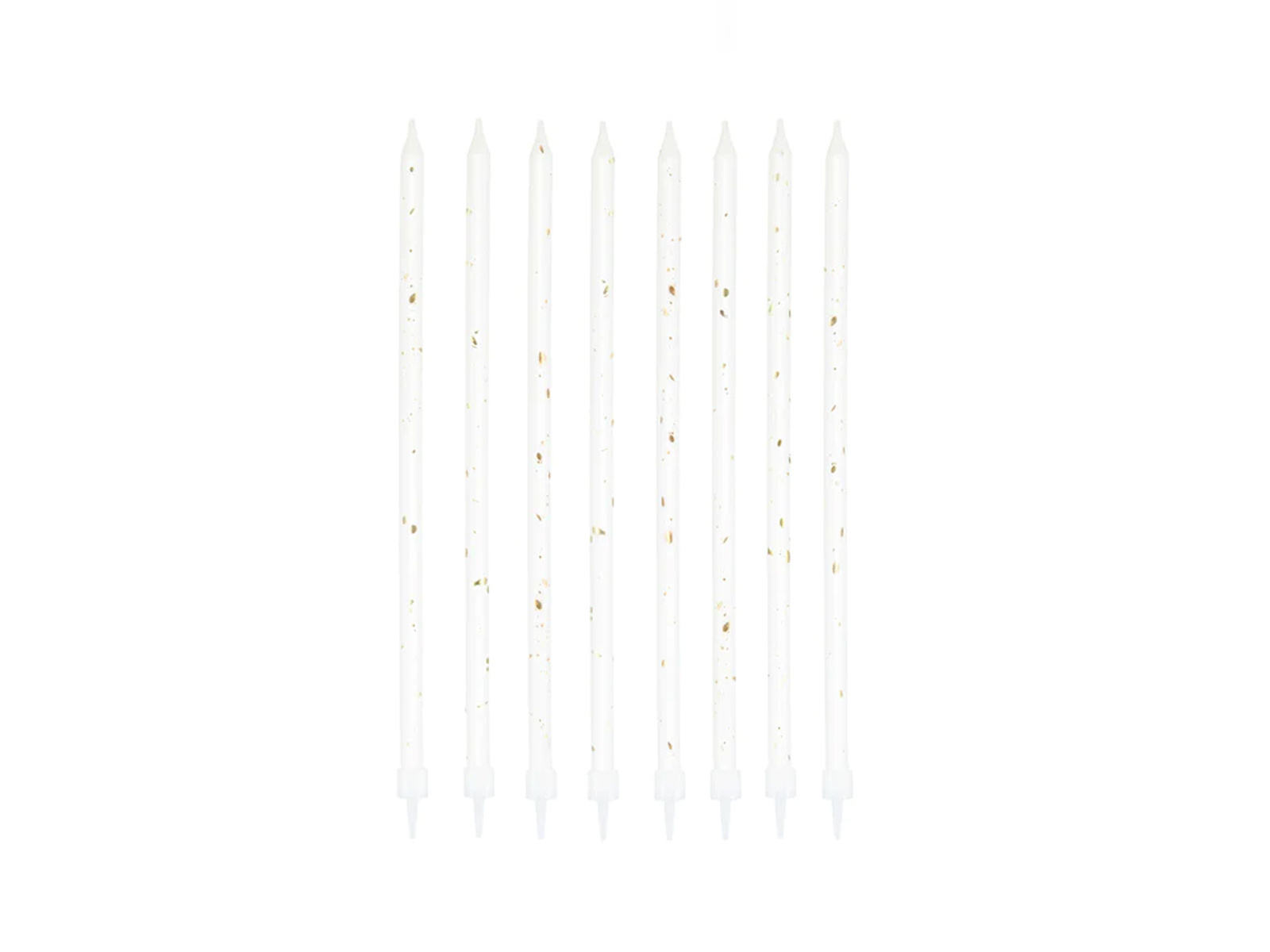 Lumânări lungi albe și aurii - 15 cm - 8 buc.