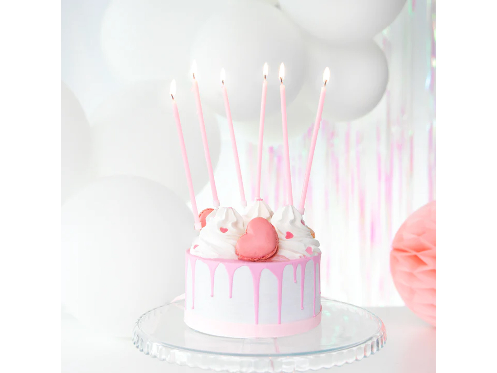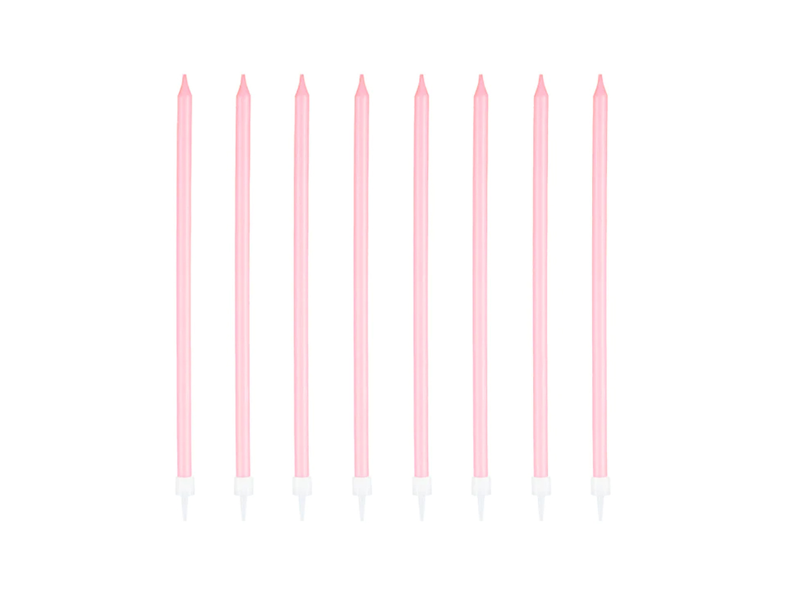 Lumânări aniversare lungi roz - 15 cm - 8 buc.