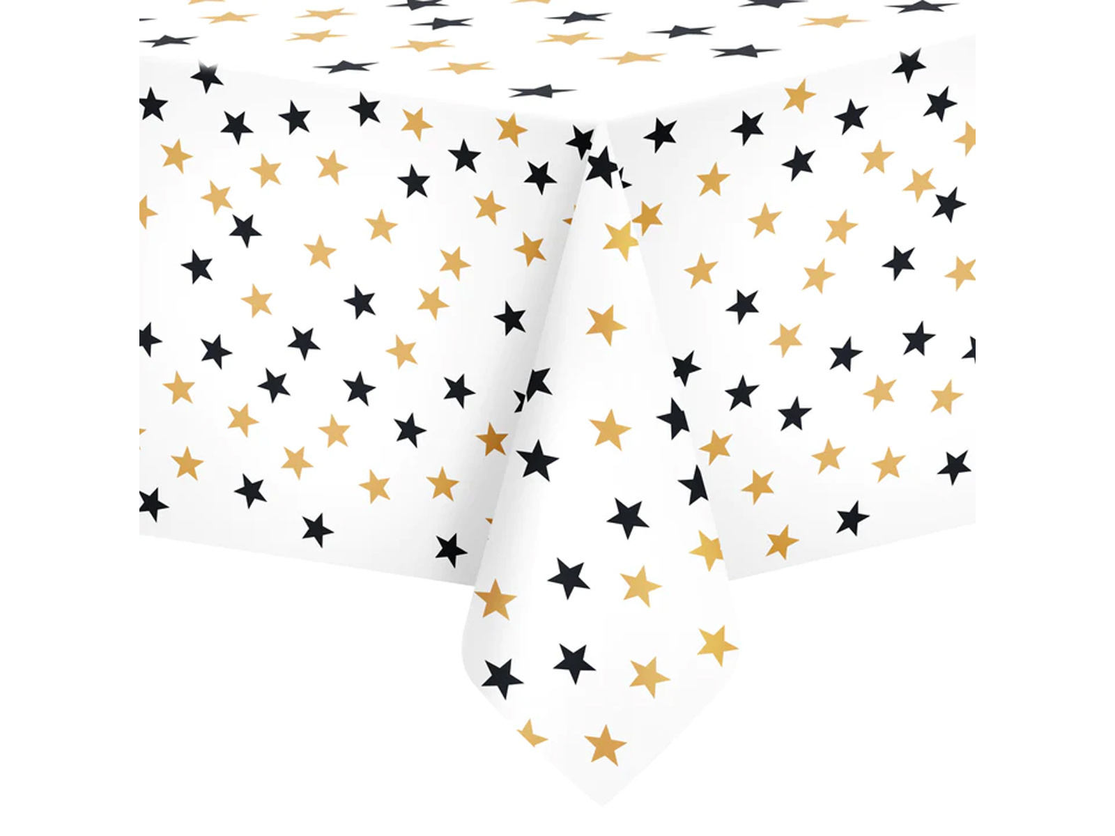 Față de masă aniversară albă cu stele - 137 x 274 cm - 1 buc.