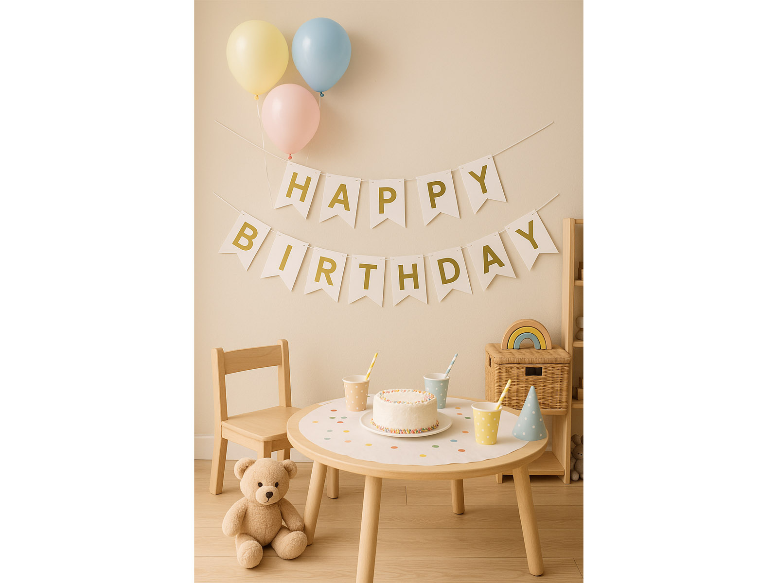 Steag alb cu inscripția Happy Birthday - 190 cm - 1 buc.