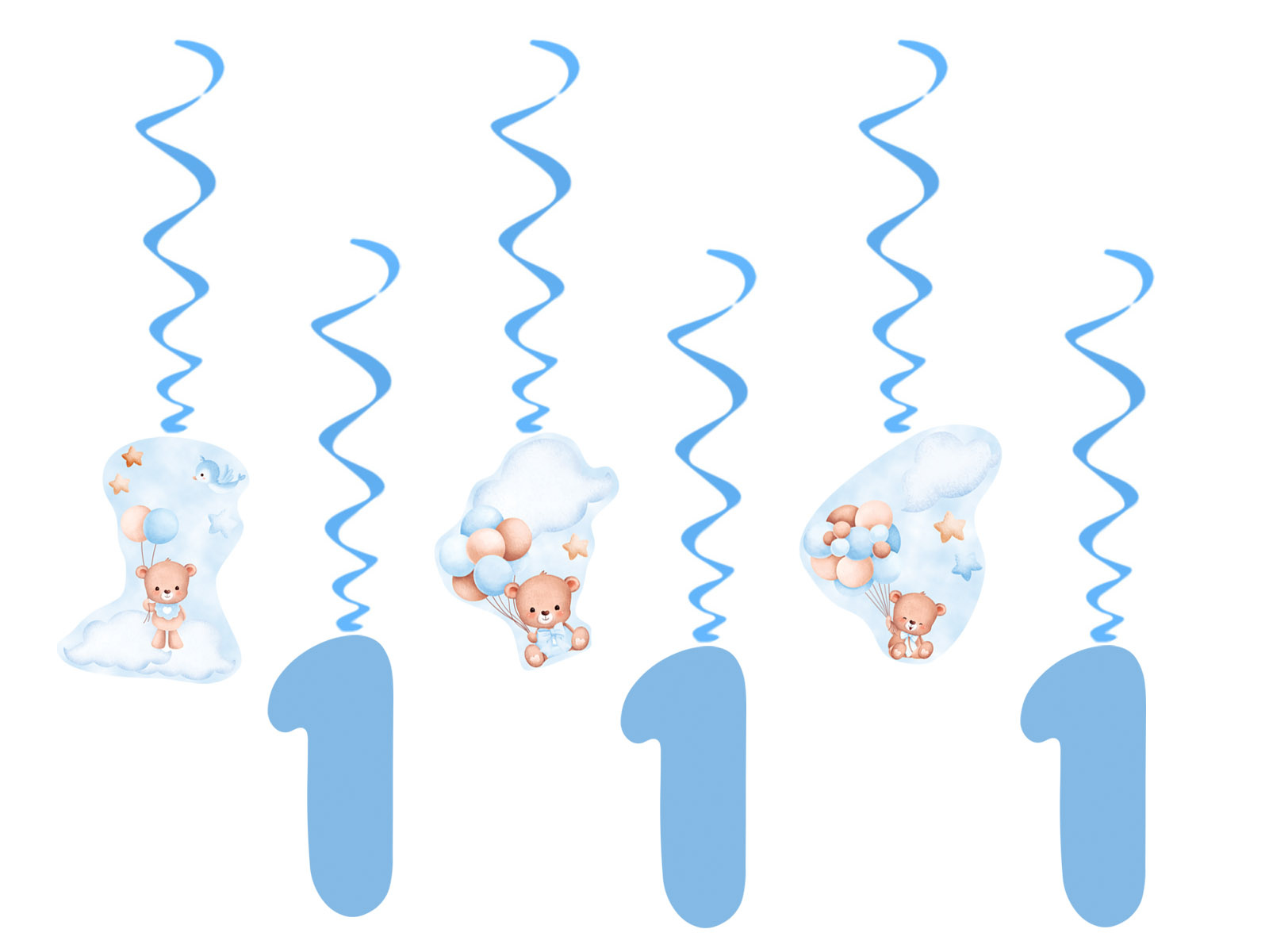 Decorațiuni suspendate albastru Ursuleți Teddy cu baloane - 6 buc.