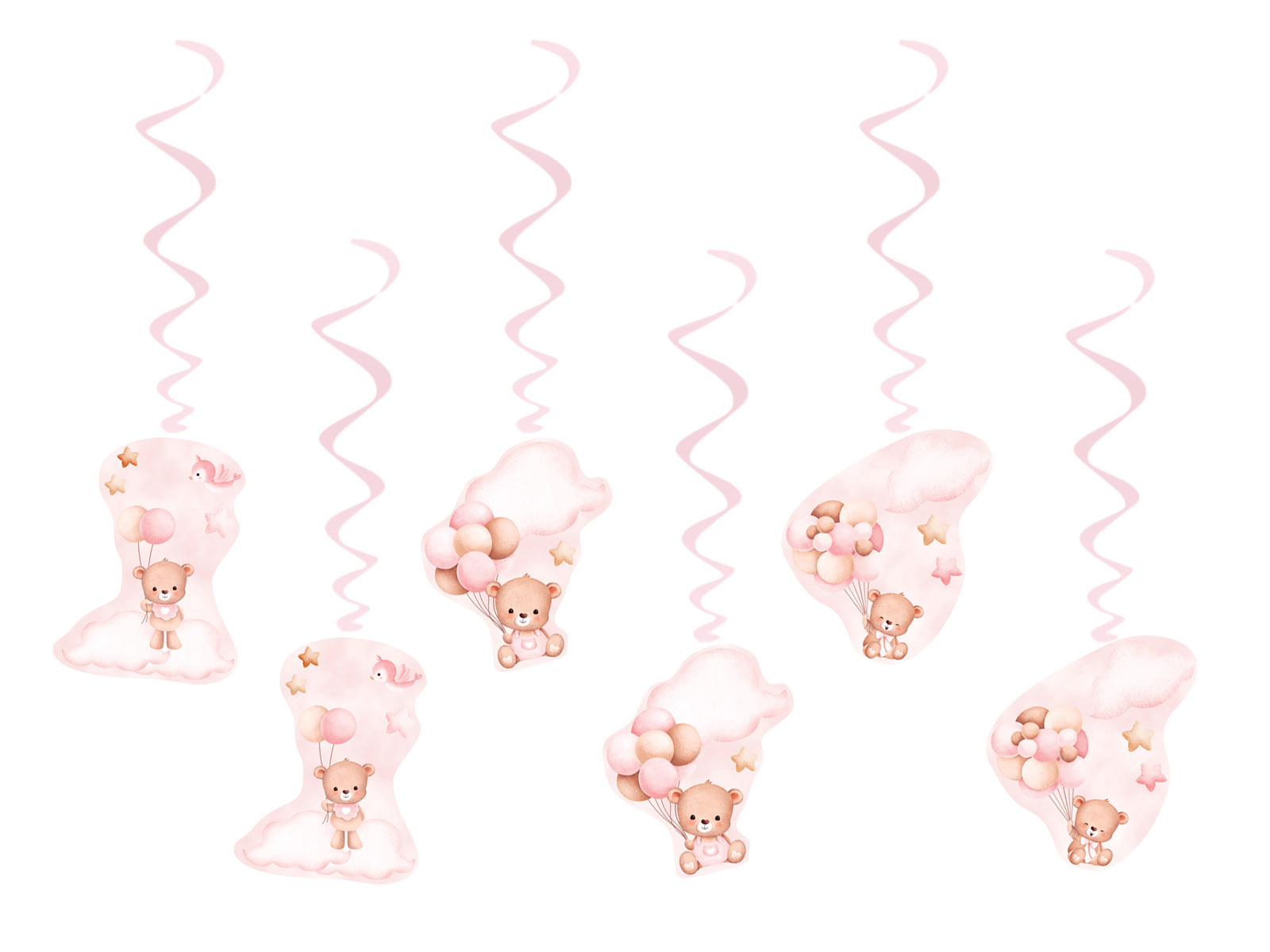 Decorațiune suspendată roz Ursuleți Teddy cu baloane - 6 buc.