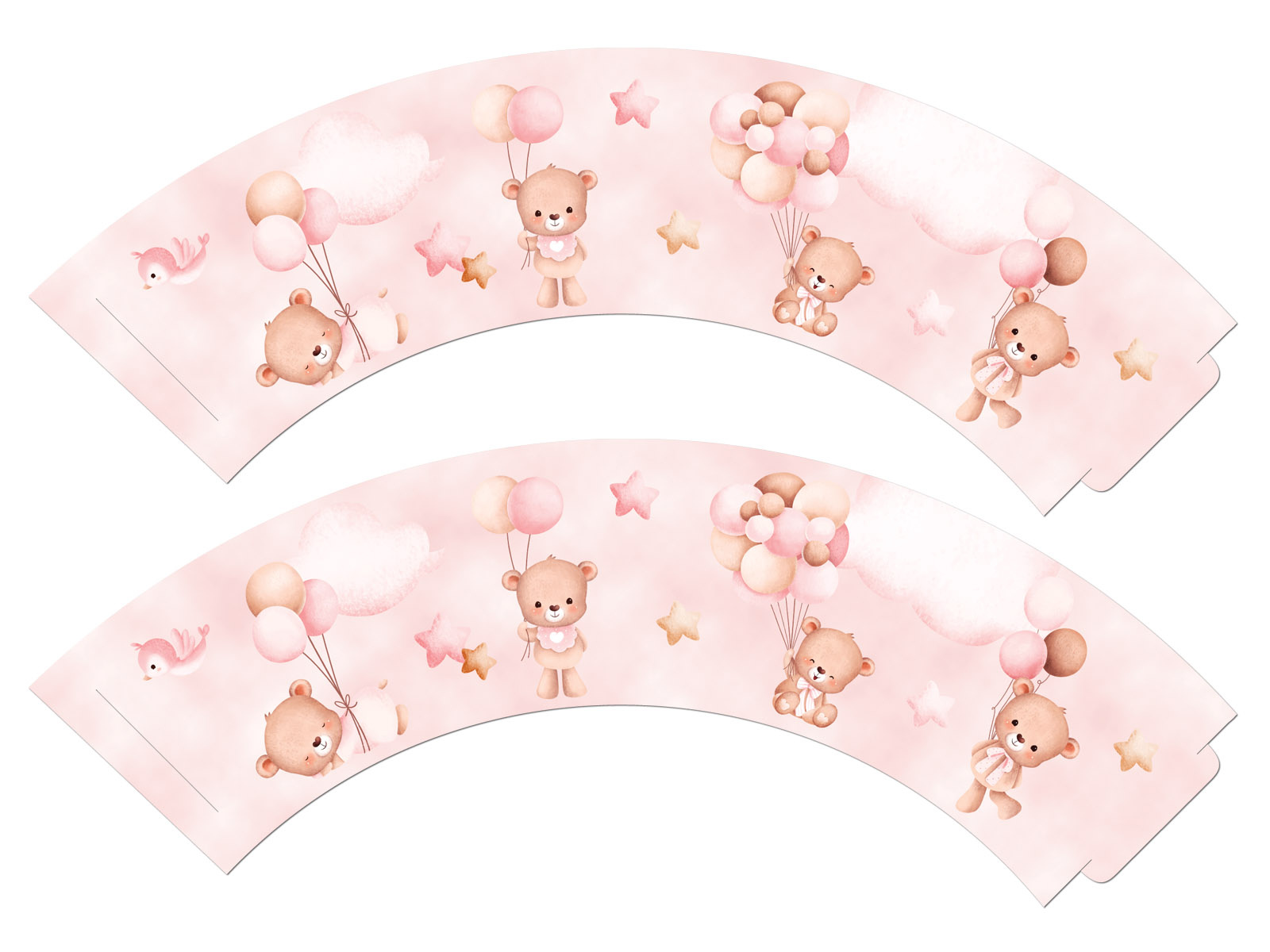 Cupcake cupcakes roz Ursuleți Teddy cu baloane - 6 buc.