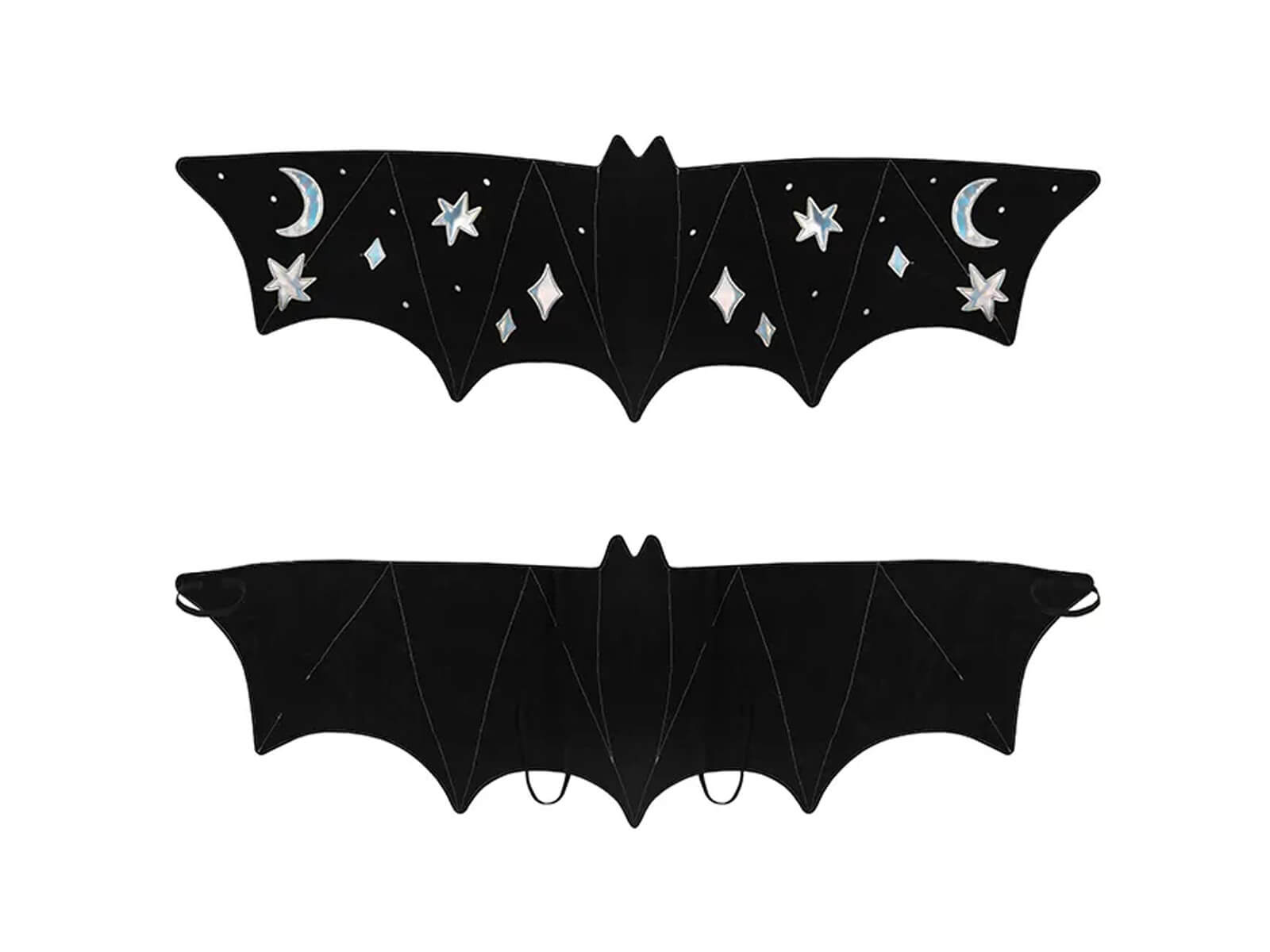 Aceste aripi de liliac negru va fi completarea perfectă a costumului de Halloween sau Andrzejki al copilului dvs! Realizate cu atenție la detalii, acestea prezintă elemente argintii, care le sporesc misterul și strălucesc în întunericul nopții. Dimensiunea universală face ca acestea să se potrivească copiilor cu vârste cuprinse între 3 și 7 ani, ceea ce le face o alegere extrem de practică printre costumele de Halloween.