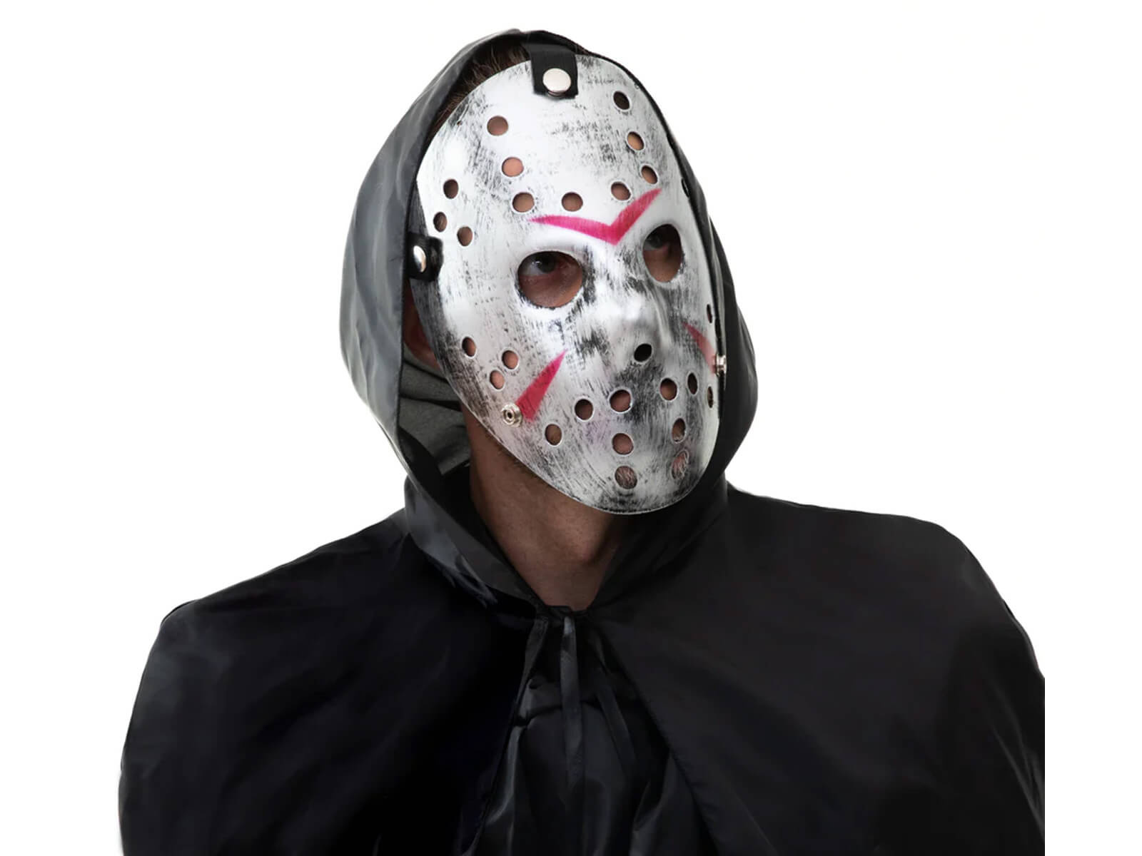 Transformă-te într-un erou horror legendar cu Masca de argint Vineri 13. Acest accesoriu plin de caracter cu un motiv de mască de hochei este perfect pentru nebunia de Halloween. Aspectul autentic unic obținut prin detaliile atent lucrate ale vopselei crăpate și zgâriate va da deghizării dvs. un caracter unic.
