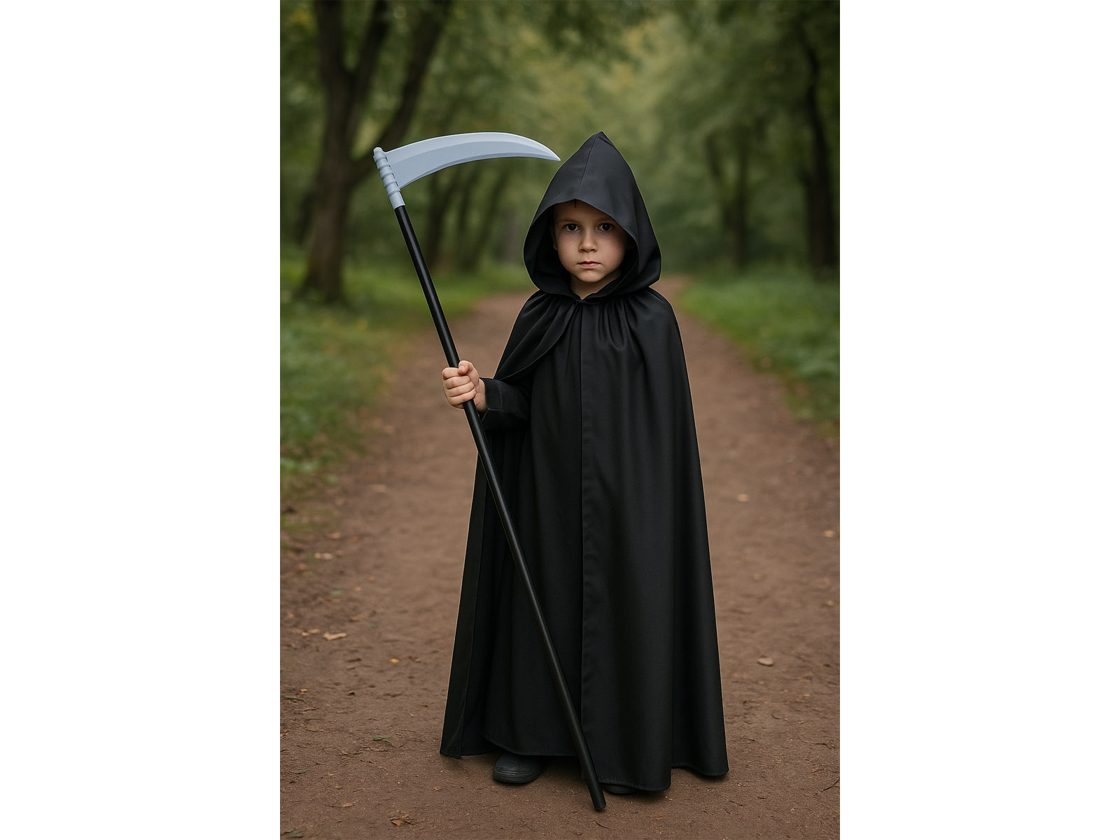 O haină neagră, misterioasă, ideală pentru oricine dorește să imite un personaj dintr-o altă lume! Această pelerină versatilă cu glugă este alegerea perfectă pentru Halloween, Andrzejki sau alte petreceri tematice. Perfect ca parte a unui costum de moarte sau mortuar. Fabricat din materiale de înaltă calitate, acesta oferă confort și atmosfera potrivită de mister.