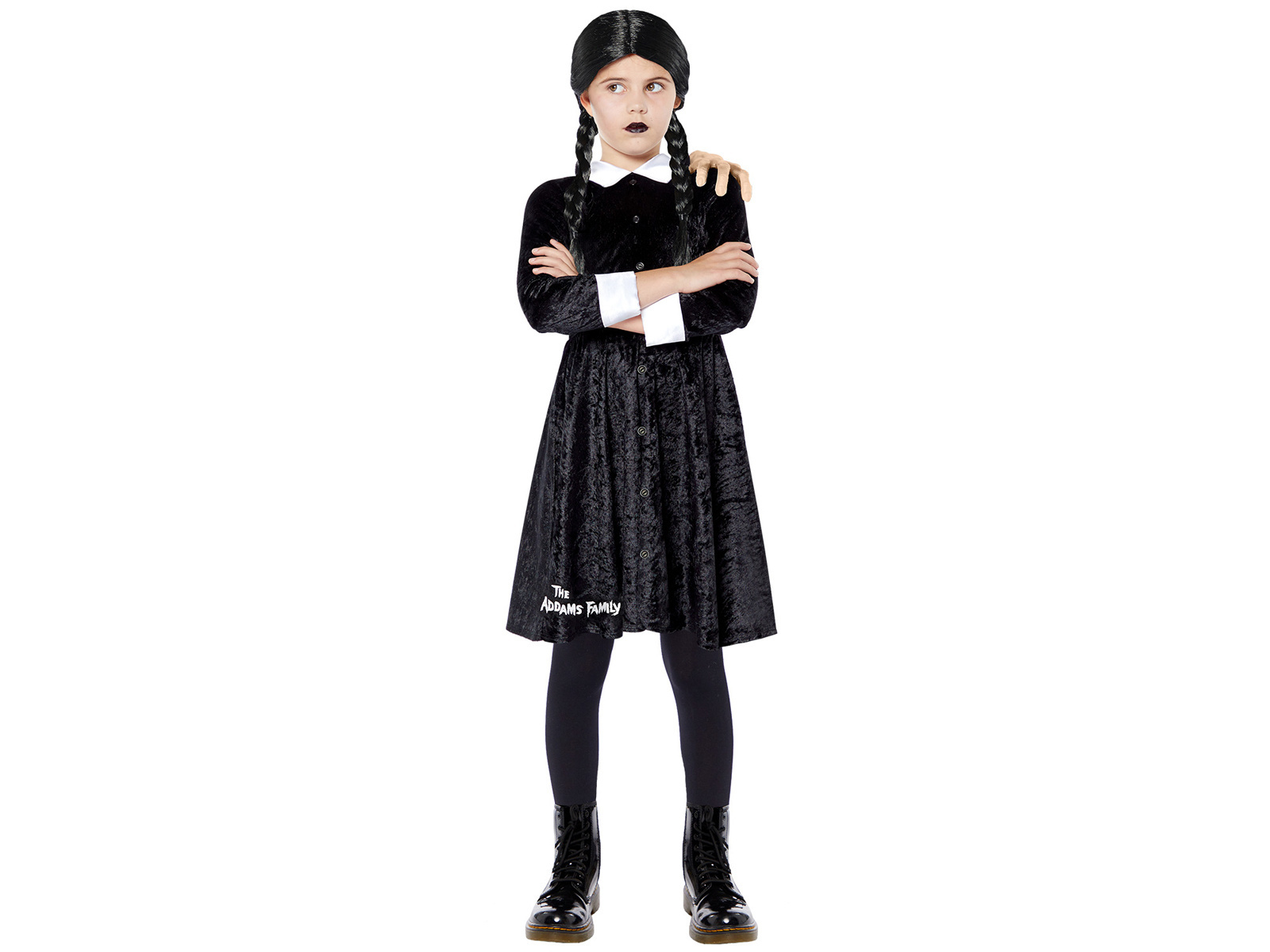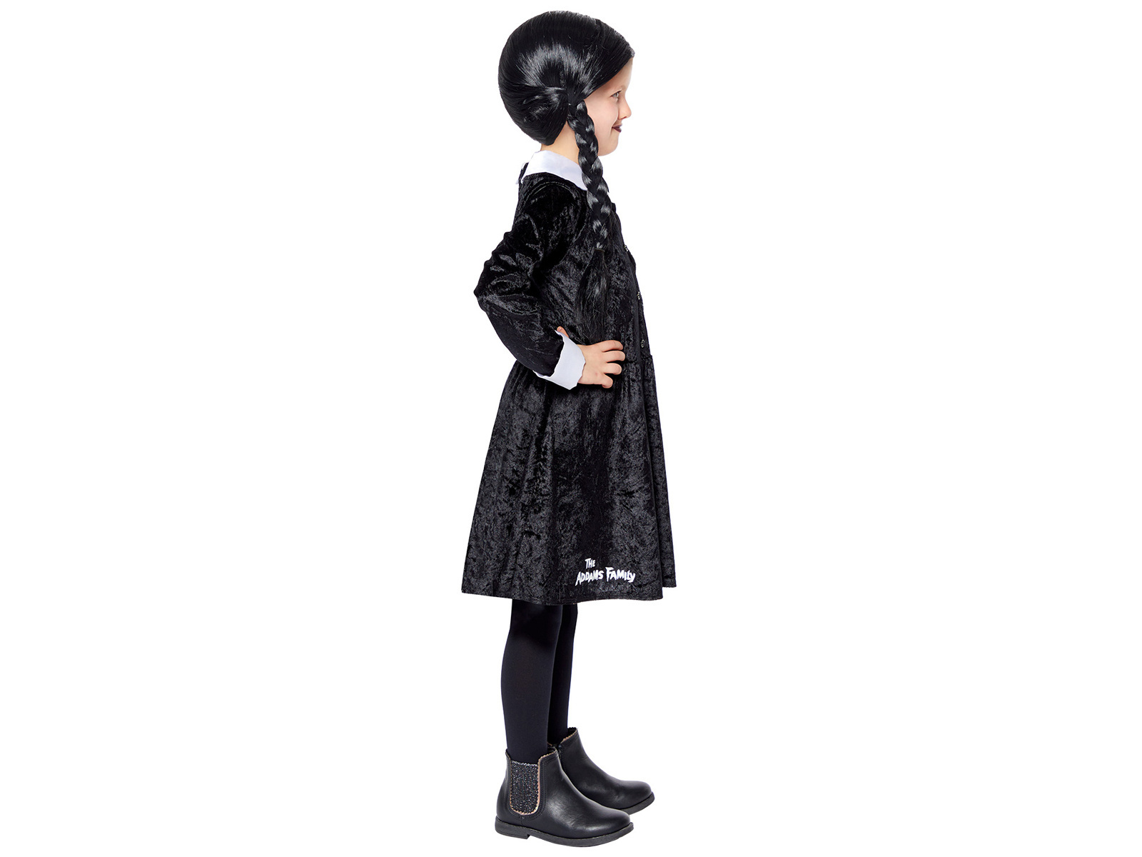 Transformă-ți micuțul în celebrul personaj din Familia Addams cu acest costum licențiat de miercuri. O alegere excelentă pentru Halloween, Andrzejki sau petreceri aniversare tematice. Costumul este o reproducere fidelă a ținutei purtate de Wednesday, fiind perfect pentru micii fani ai acestui personaj întunecat.