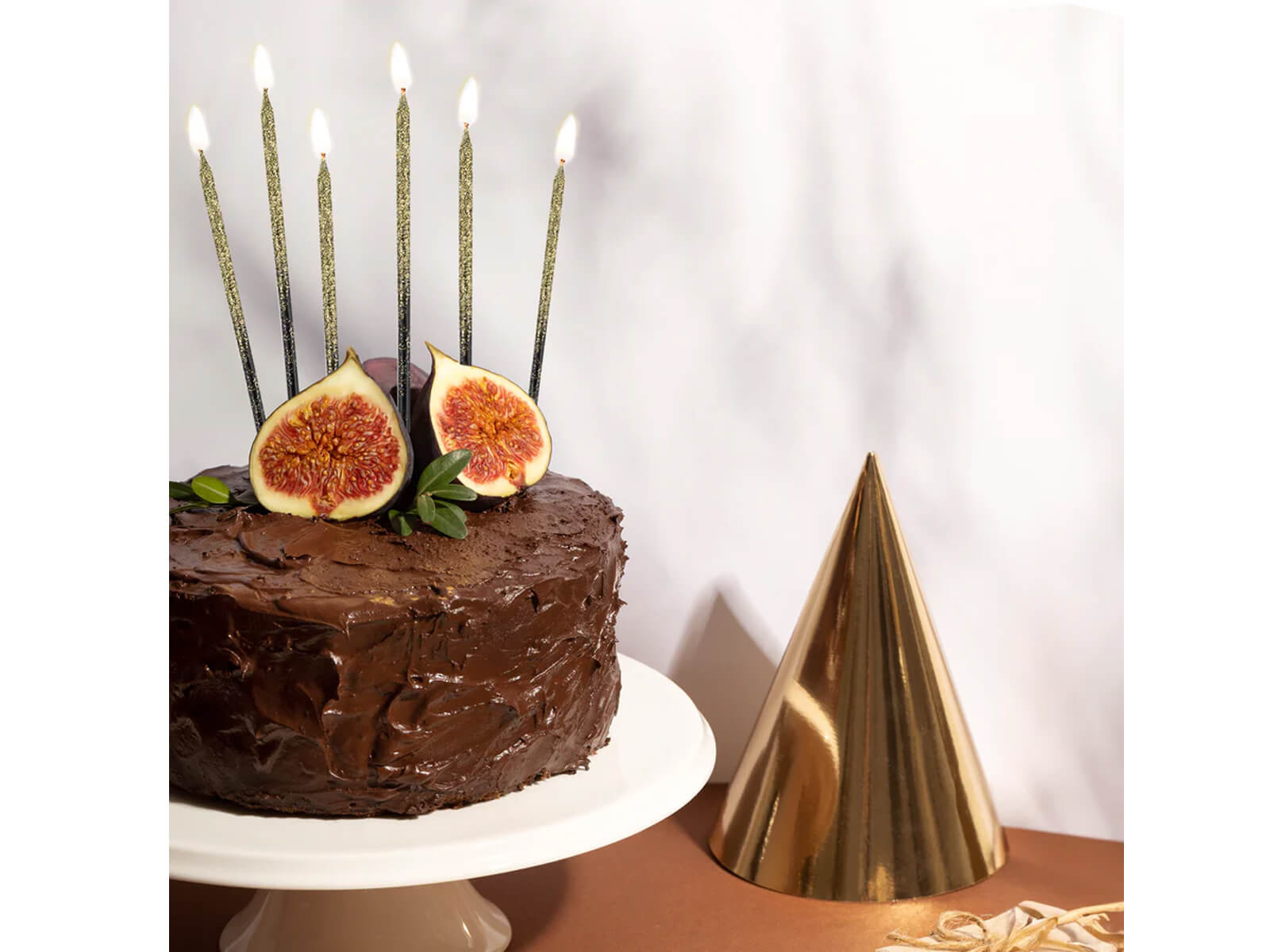 Lumânări de aniversare cu sclipici auriu ombre - 13,5 cm - 6 buc.