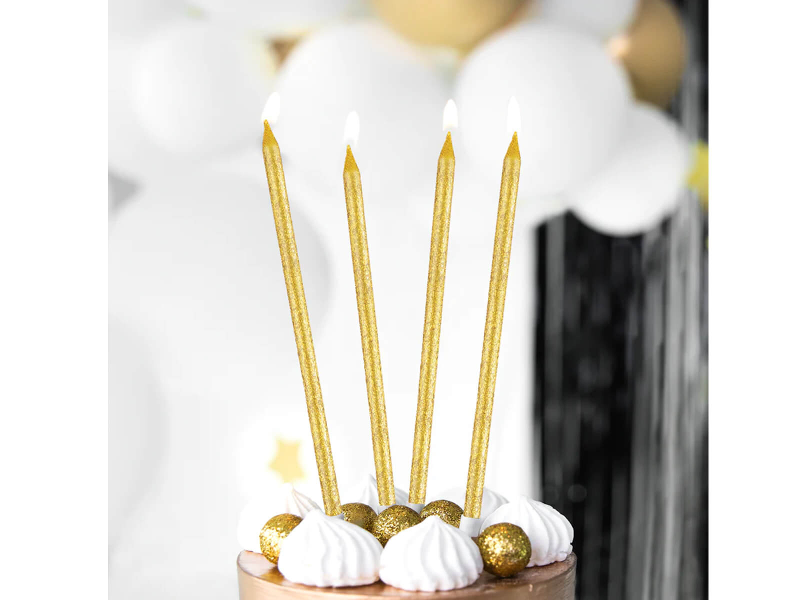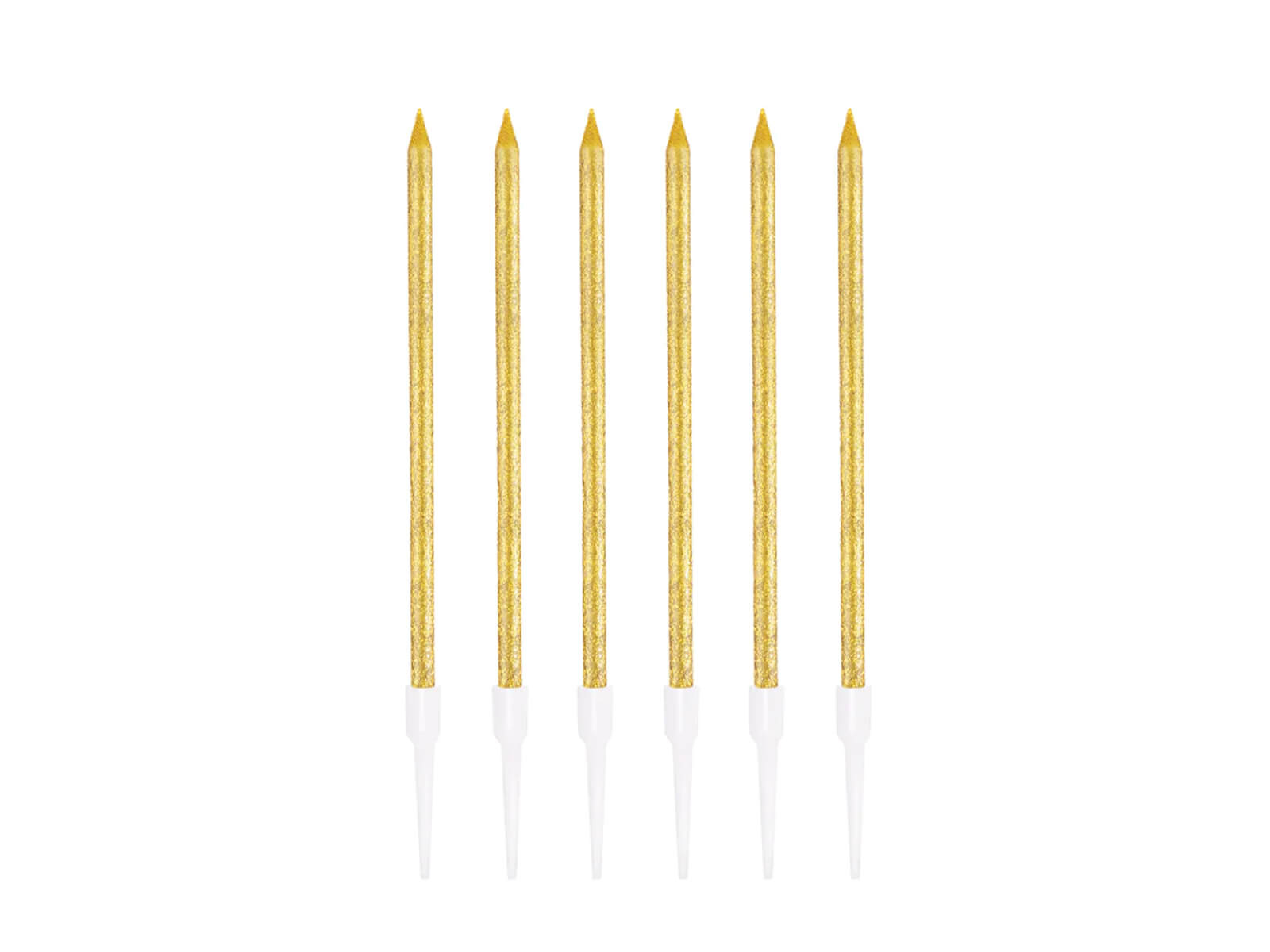 Lumânări aniversare aurii cu sclipici - 13,5 cm - 6 buc.