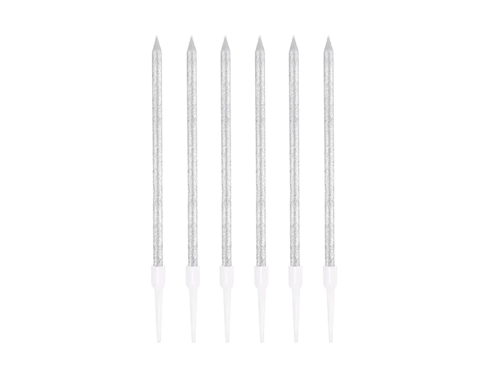 Lumânări aniversare argintii cu sclipici - 13,5 cm - 6 buc.