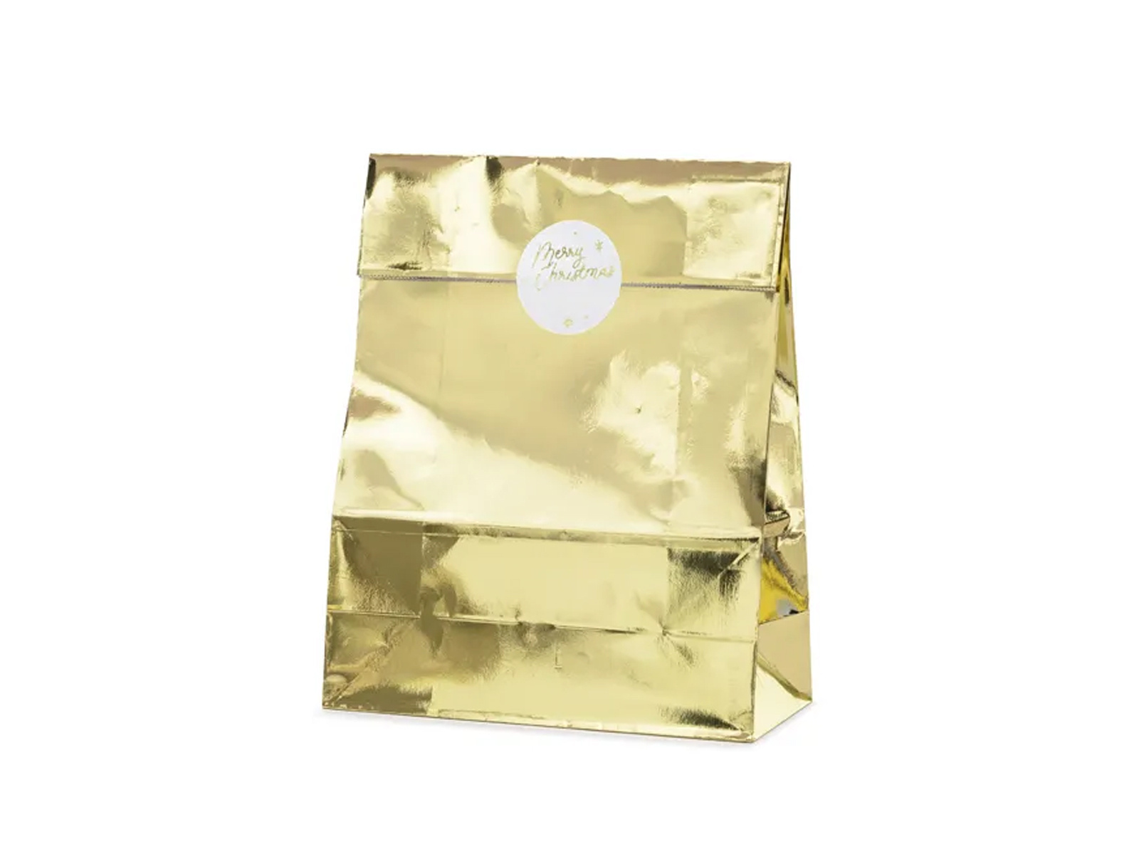 Oferă-le celor dragi cadourile lor în stil festiv cu pungile noastre pungi aurii pentru cadouri Crăciun Fericit. Acest set include trei pungi cu finisaje elegante care surprind perfect spiritul Crăciunului. Fiecare geantă este decorată în auriu metalic, adăugând o notă de lux și farmec.