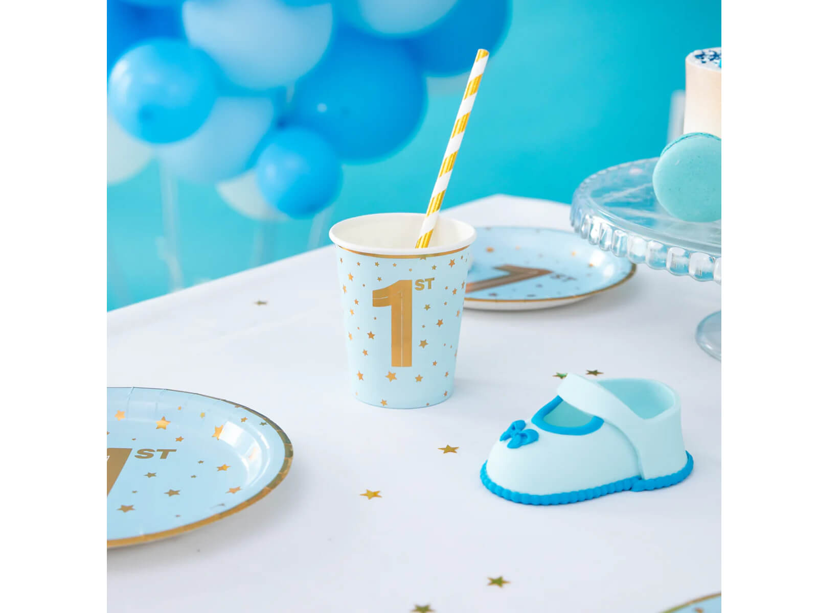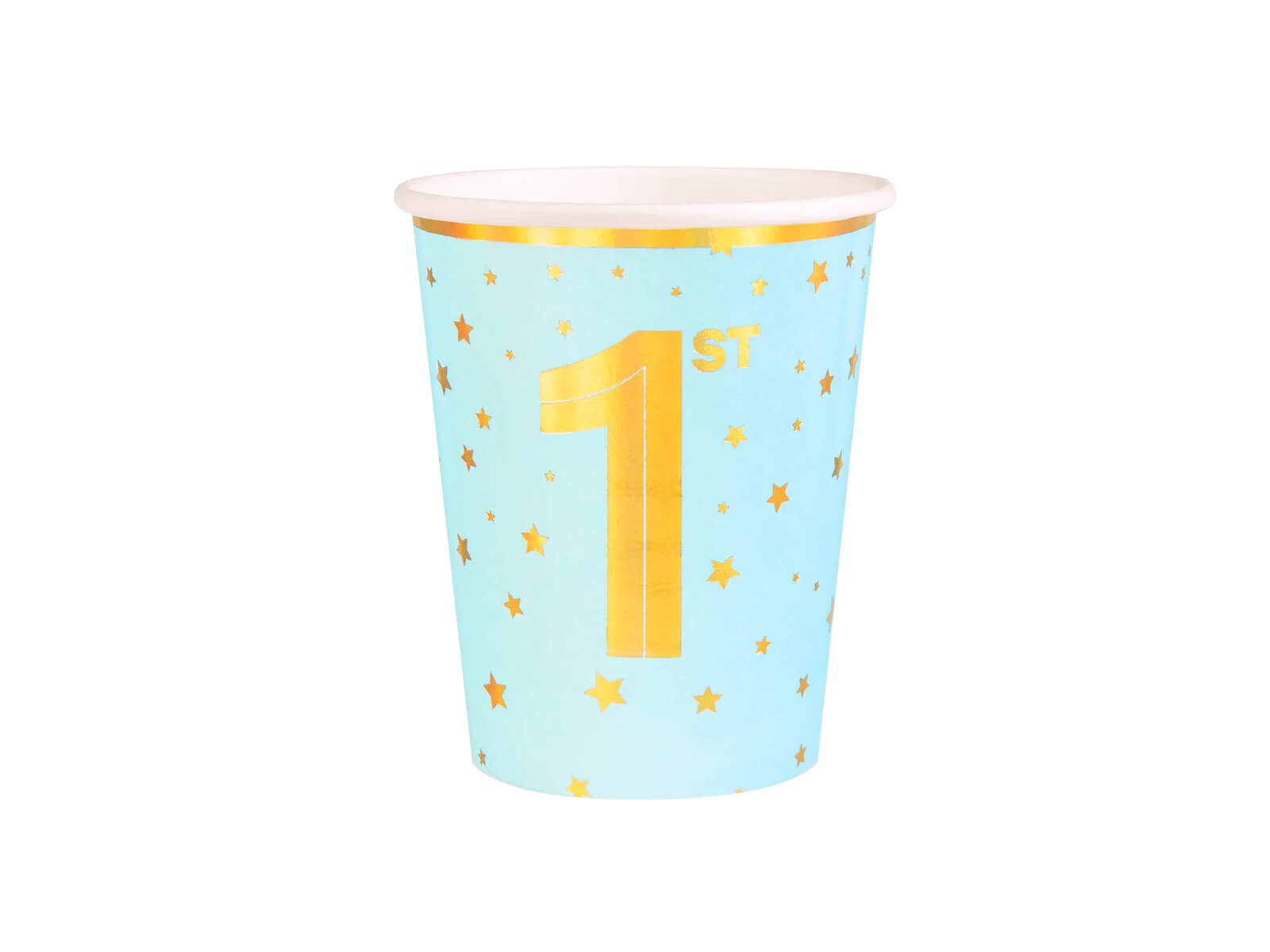 Pahare de hârtie albastre pentru ziua de naștere - 220 ml - 6 buc.