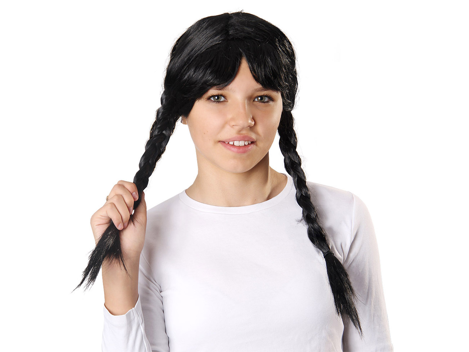 Dați viață aventurii costumului dvs. cu perucă neagră cu împletituri și franjuri. Este completarea perfectă pentru un costum inspirat de personajul iconic de miercuri din familia Addams, dar este, de asemenea, minunat pentru o varietate de evenimente, cum ar fi carnavaluri, Ziua Sfântului Andrei sau Halloween.
