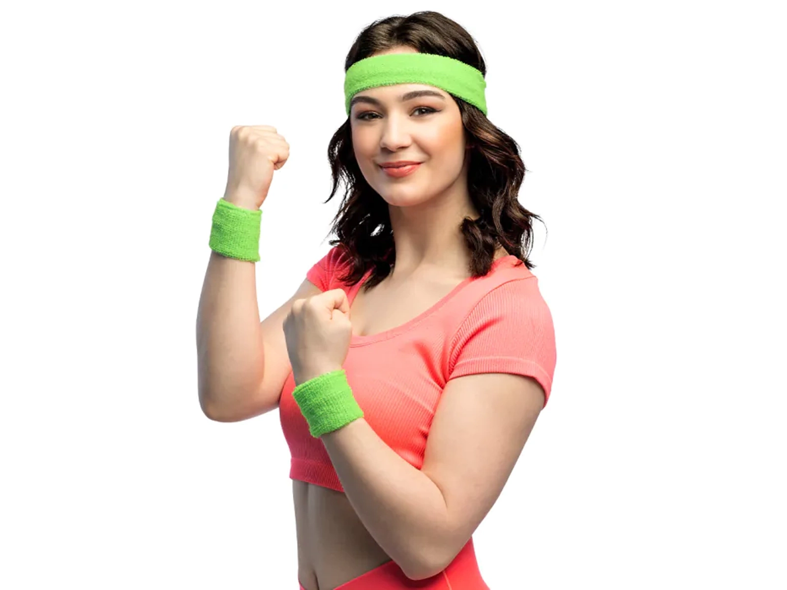 Pregătește-te să călătorești înapoi în timp în era disco cu setul nostru de brățări neon! Aceste accesorii verzi surprind perfect stilul anilor '80, adăugând nu doar culoare, ci și o notă autentică ținutei tale. Setul include trei bentițe: una pentru cap și două pentru brațe, care merg bine cu orice costum retro.