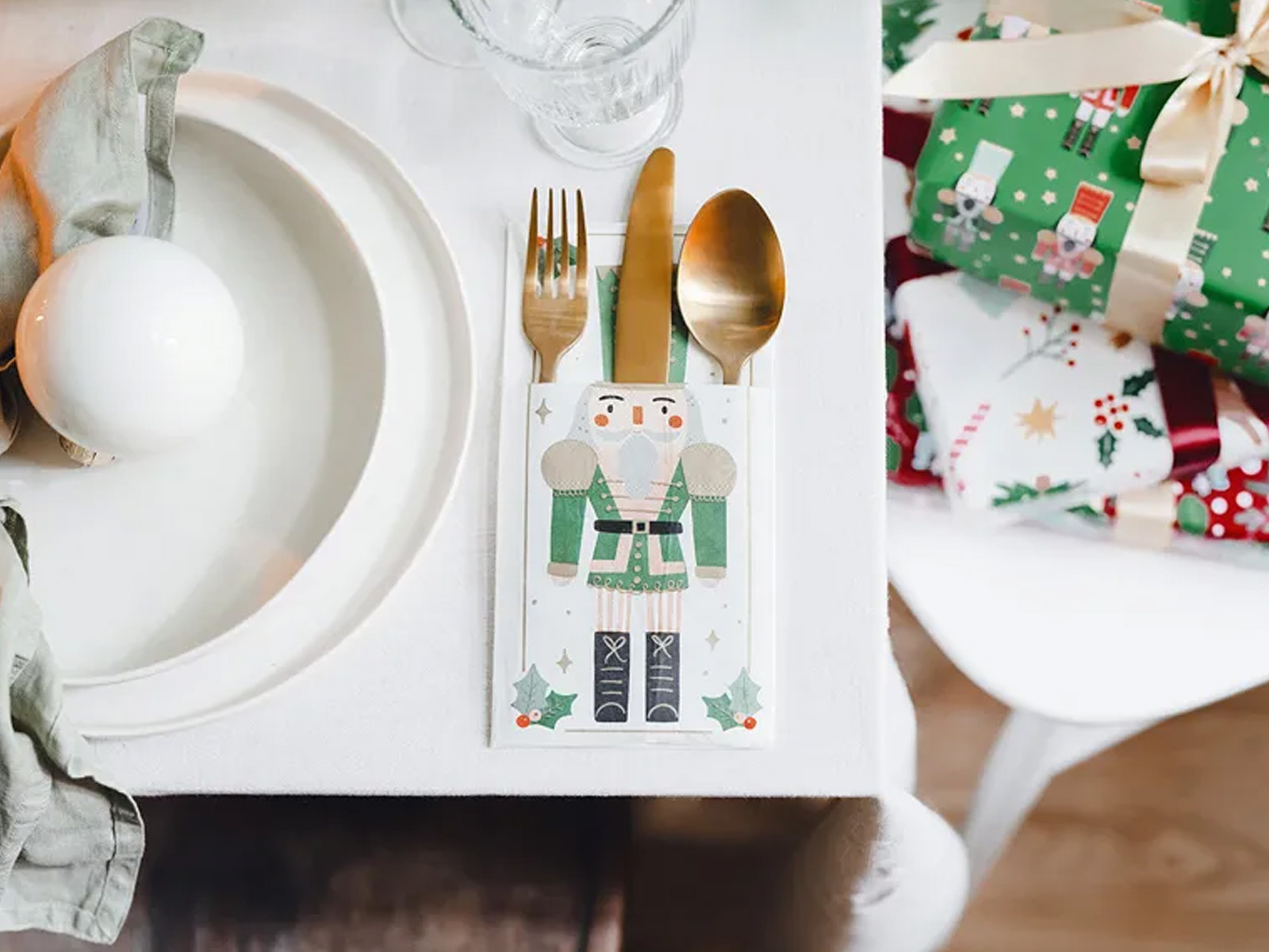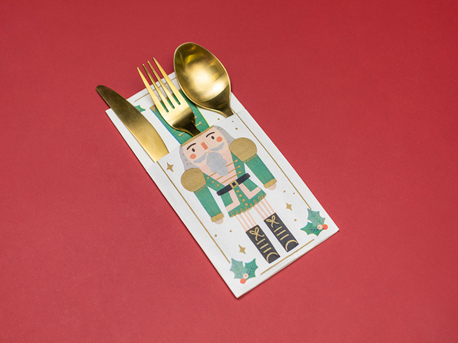 Papierowe kieszonki na sztućce Dziadek do orzechów - 6 szt.