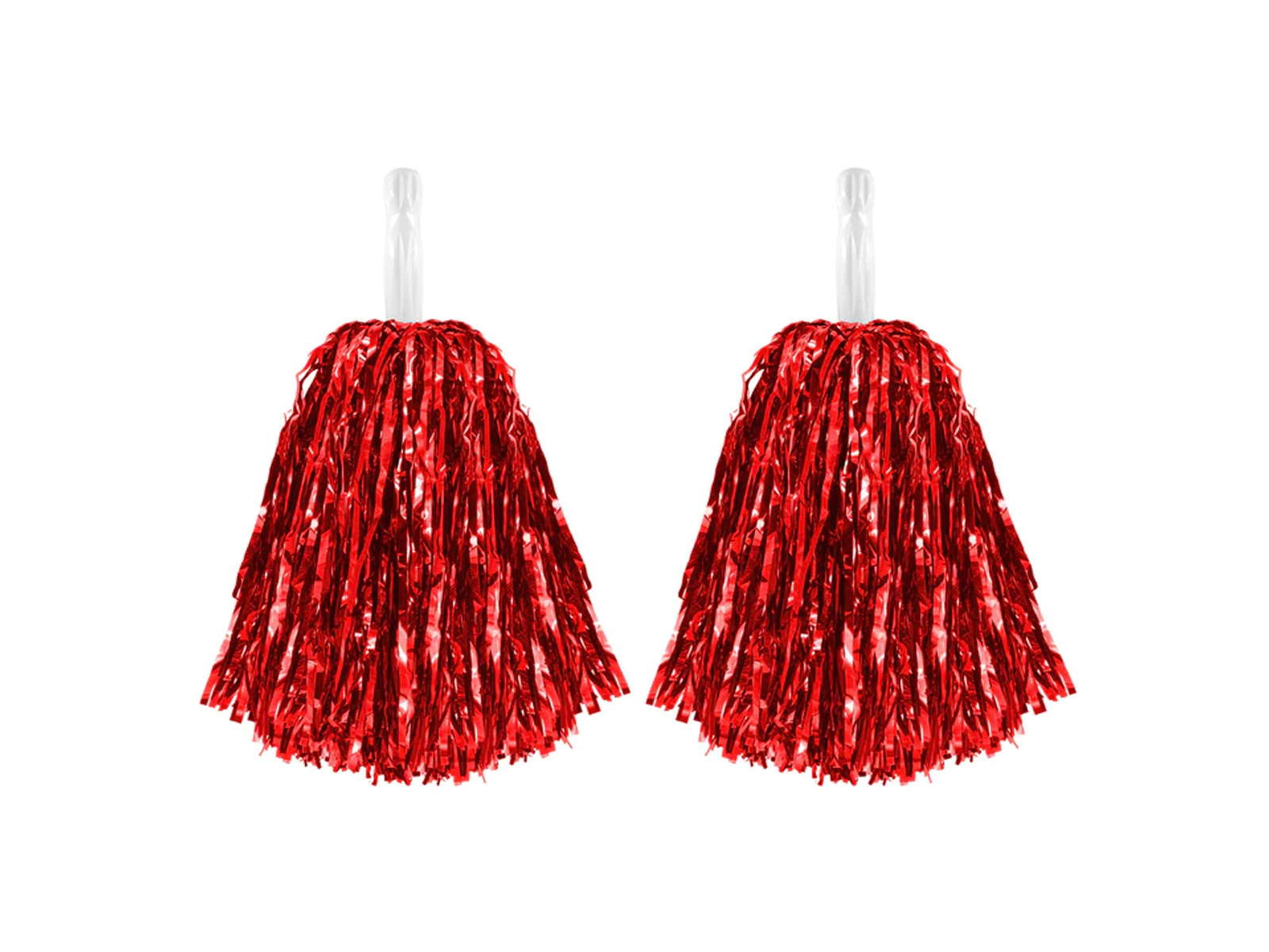 Pompoane roșu metalizat pentru majorete - 2 buc.