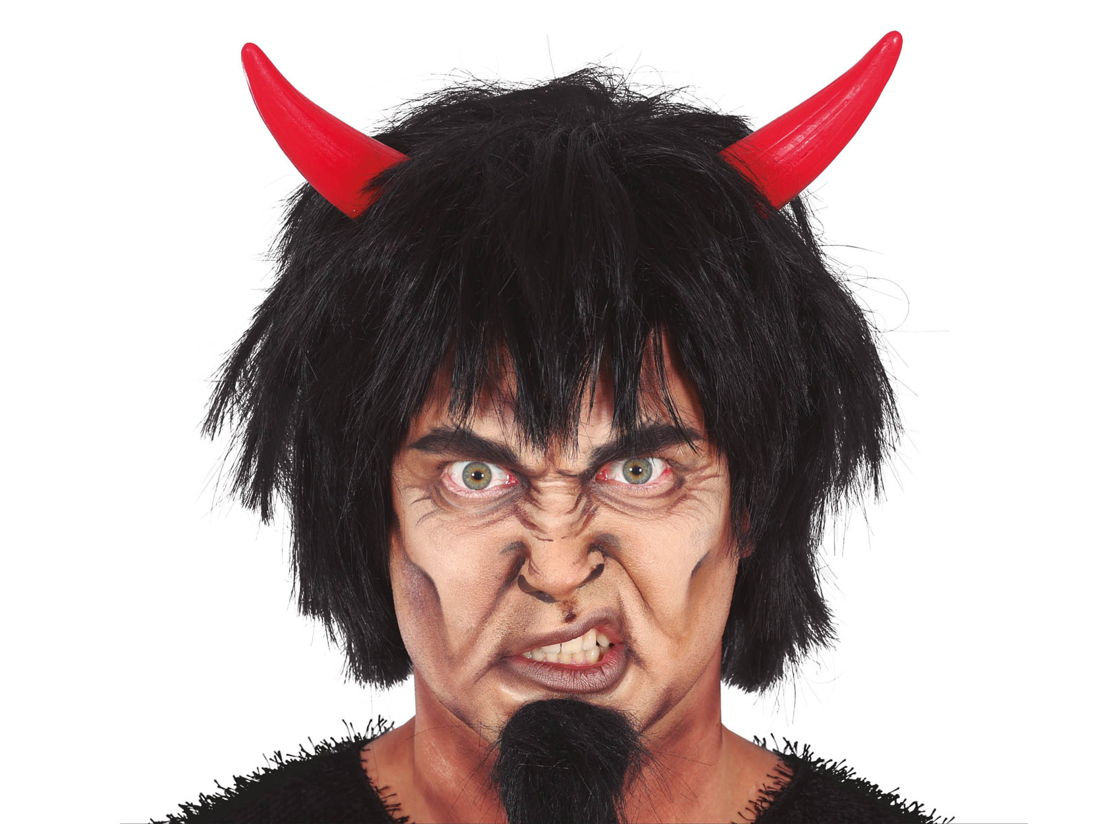 Peruca diavolului este un element atractiv al oricărei ținute. Părul negru, strălucitor, care curge în jos vă va face să simțiți adevărata putere a Halloween-ului. Atenția este atrasă de coarnele roșii, care adaugă o serie de accente diabolice look-ului. Perfect ca accesoriu pentru orice costum diavolesc pentru o noapte plină de frică!