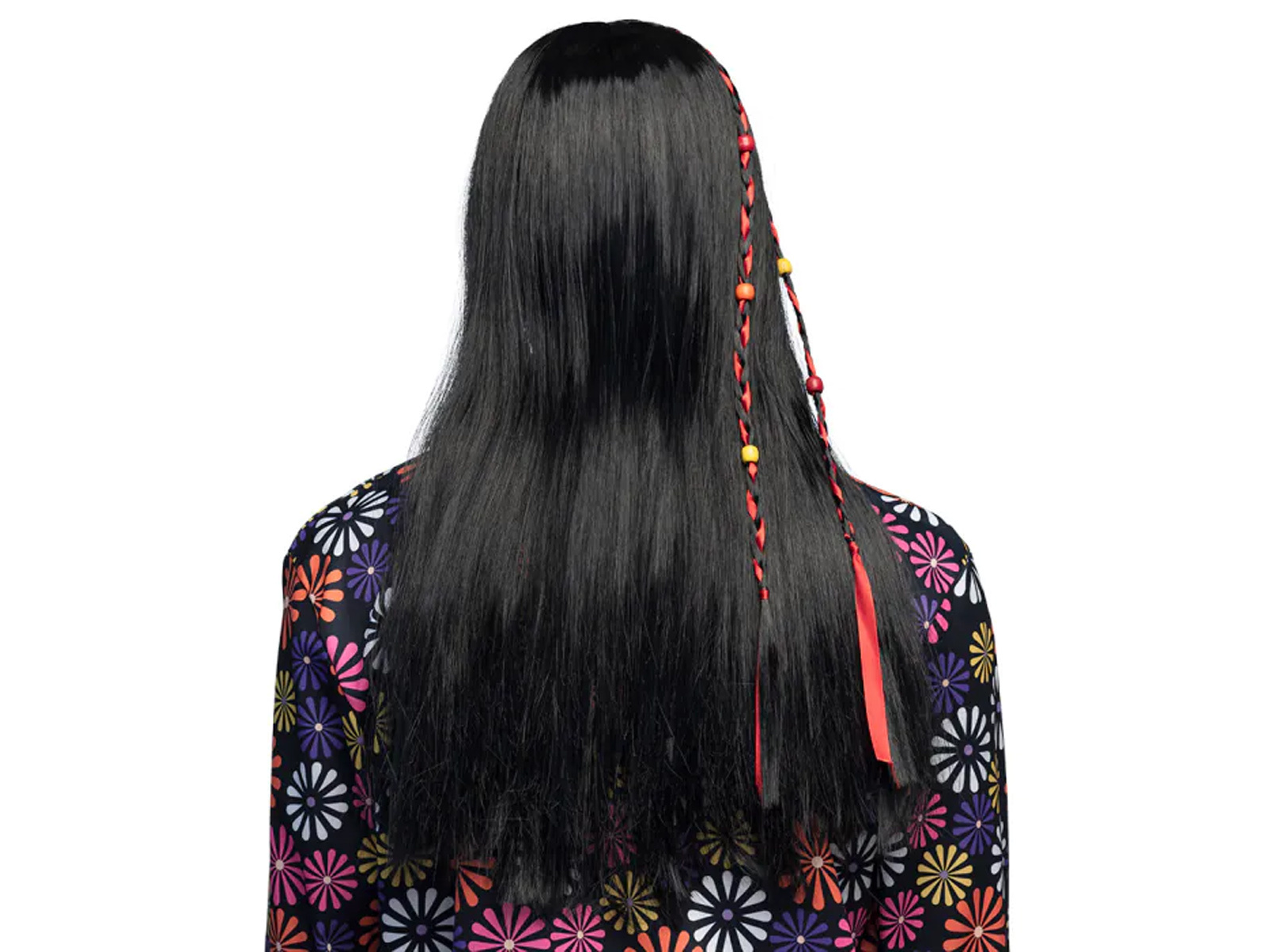 Călătoriți înapoi în timp într-o epocă a de iubire și pace cu peruca noastră elegantă "Hippie Wig with Braids". Perfectă pentru oricine dorește să adauge o notă autentică costumului său hippie, această perucă are păr negru, lung și drept, completat cu împletituri fermecătoare decorate cu margele. Purtați-l la un carnaval, la o petrecere costumată sau la alte ocazii speciale și veți atrage cu siguranță atenția tuturor celor din jur.