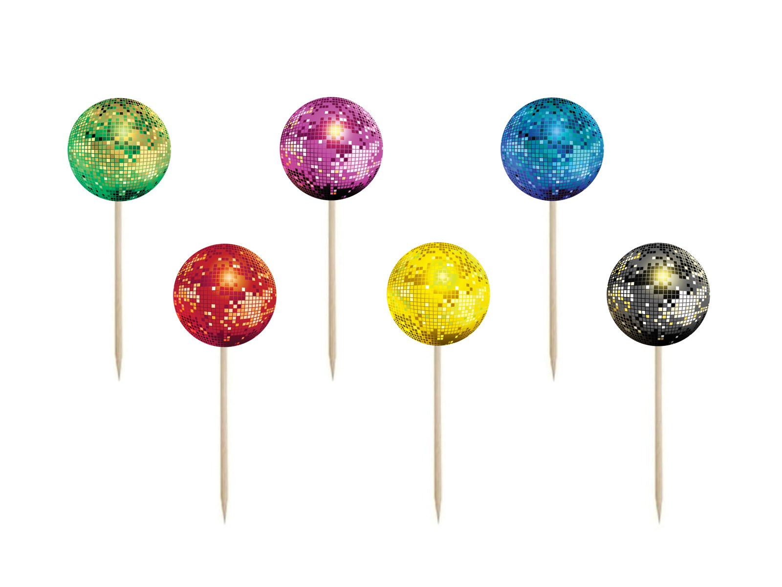 Descoperiți stilul unic al colecției Disco cu un set de decorațiuni pentru a anima orice petrecere. Înălțimea bățului este de 6,5 cm, în timp ce diametrul cercului este de 4 cm, asigurând o vizibilitate și o estetică excelente ale decorului.