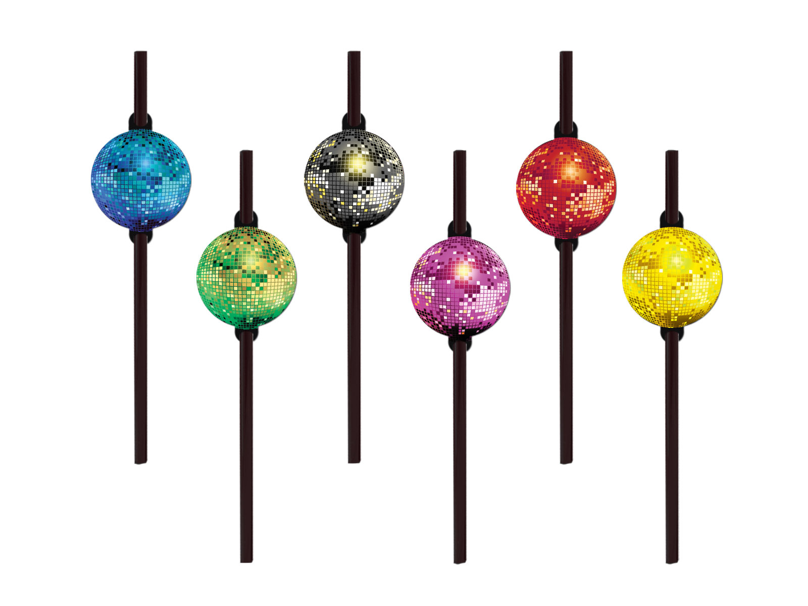 Sporiți unicitatea petrecerii dvs. cu paie unice din colecția Disco! Dispunând de medalioane strălucitoare care amintesc de bilele disco din anii '70 și '80, aceste paie negre simple sunt perfecte ca decorațiuni de masă pentru orice petrecere de carnaval, Revelion, petrecere a burlăcițelor sau alte ocazii speciale.