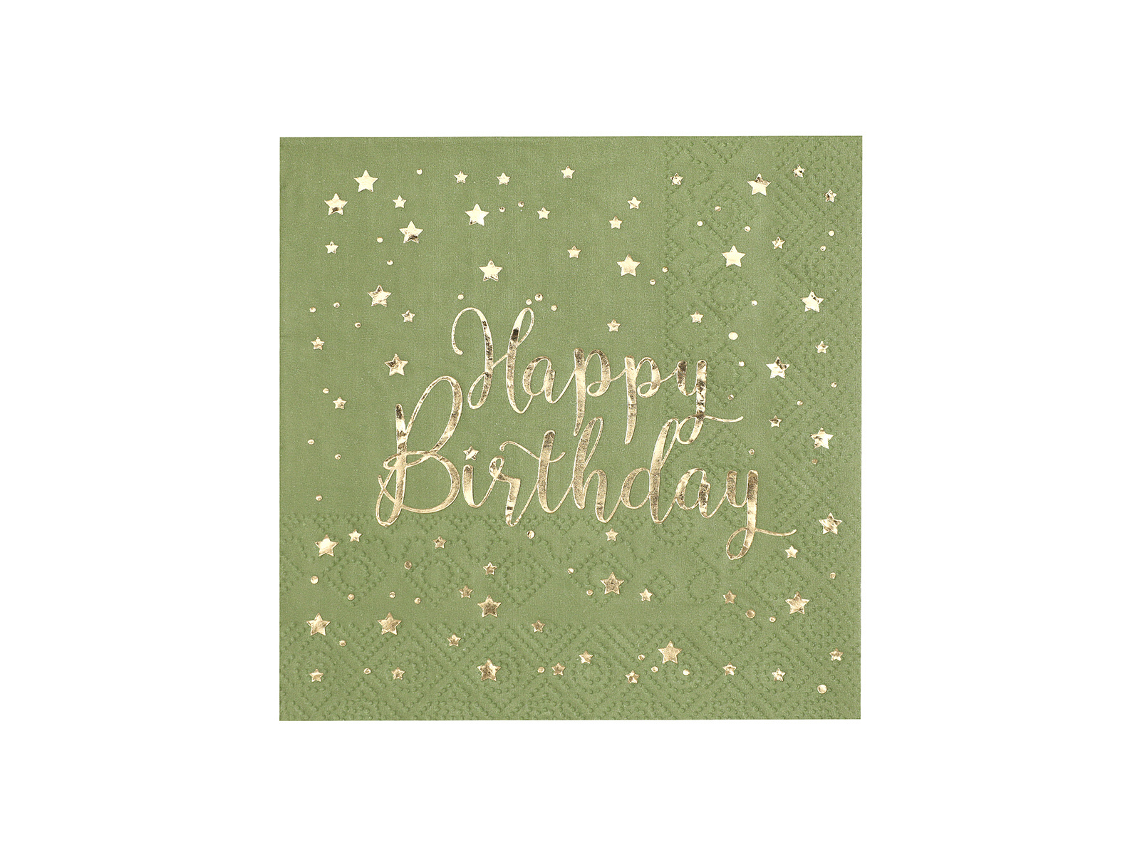 Șervețele de măsline Happy Birthday - 25 cm - 20 buc.