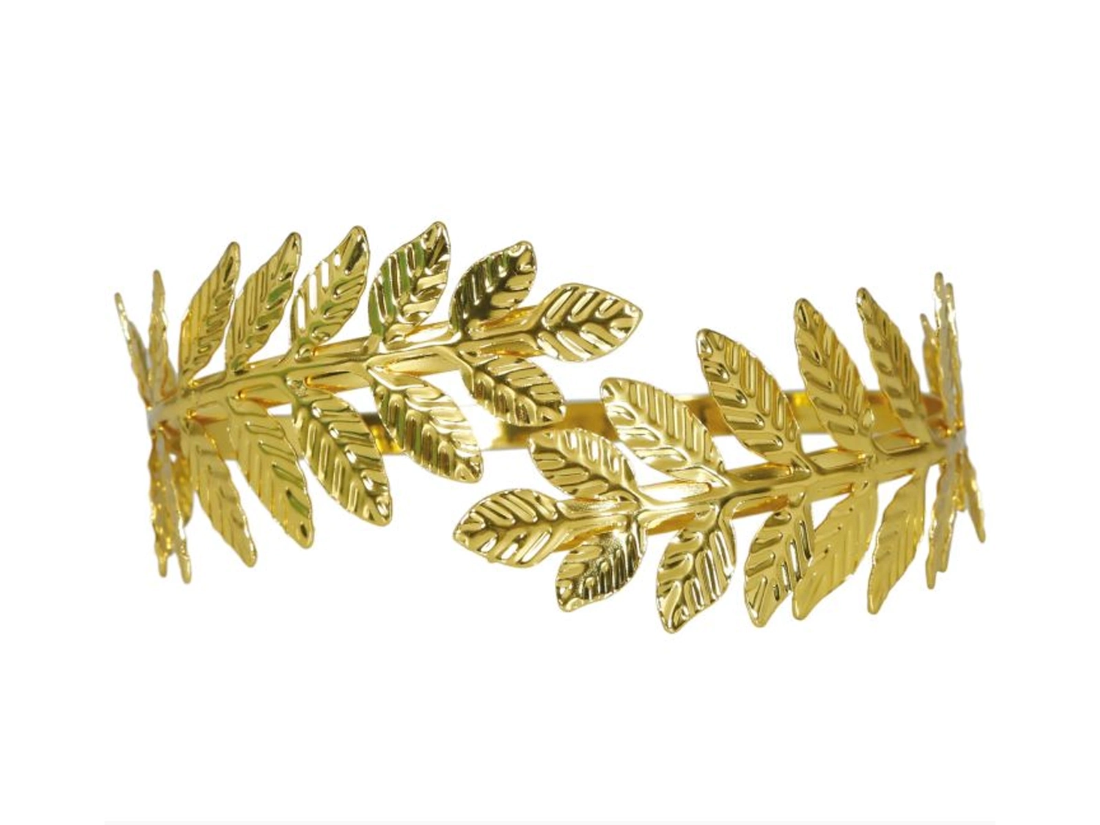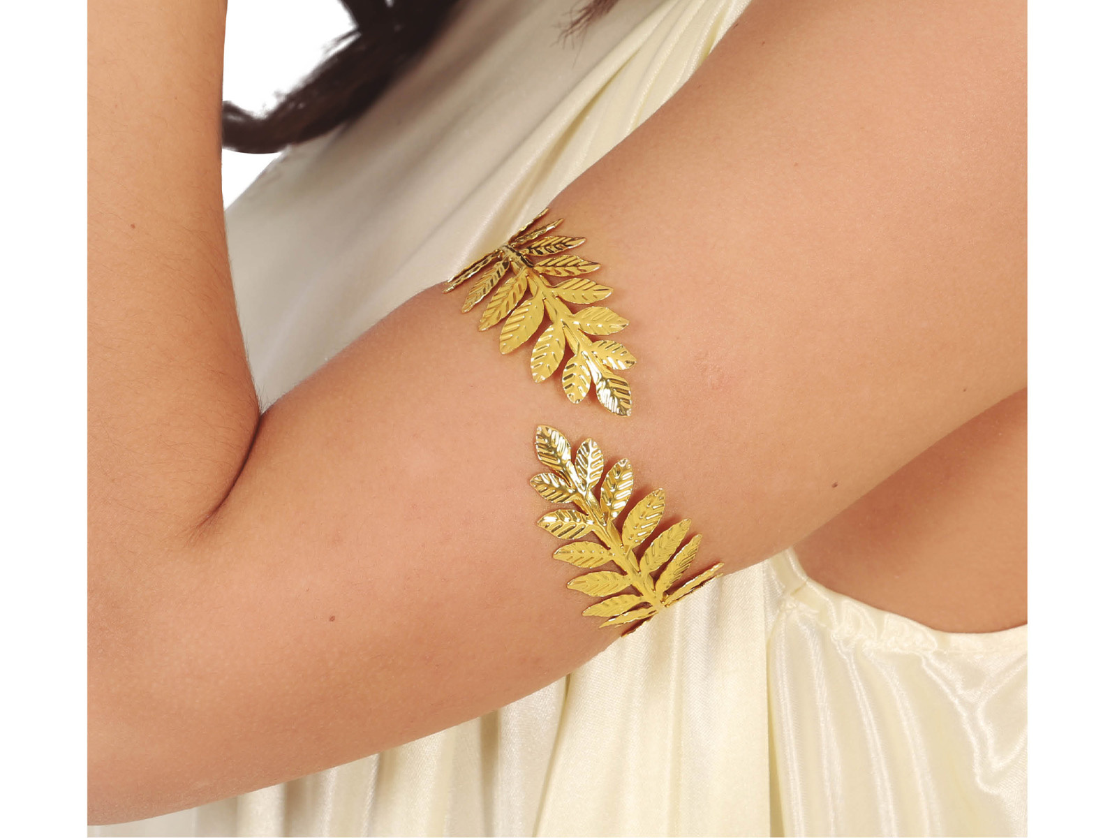 Vă prezentăm brățara exclusivă Brățară de aur cu frunze de laur. Acesta este un accesoriu unic care vă va duce înapoi în timp în Roma antică. Proiectat cu atenție la detalii, motivul său amintește de frunzele de laur, care în antichitate erau un simbol al victoriei și demnității. Această brățară nu numai că arată frumos, dar adaugă și măreție și clasă oricărui costum istoric sau teatral.