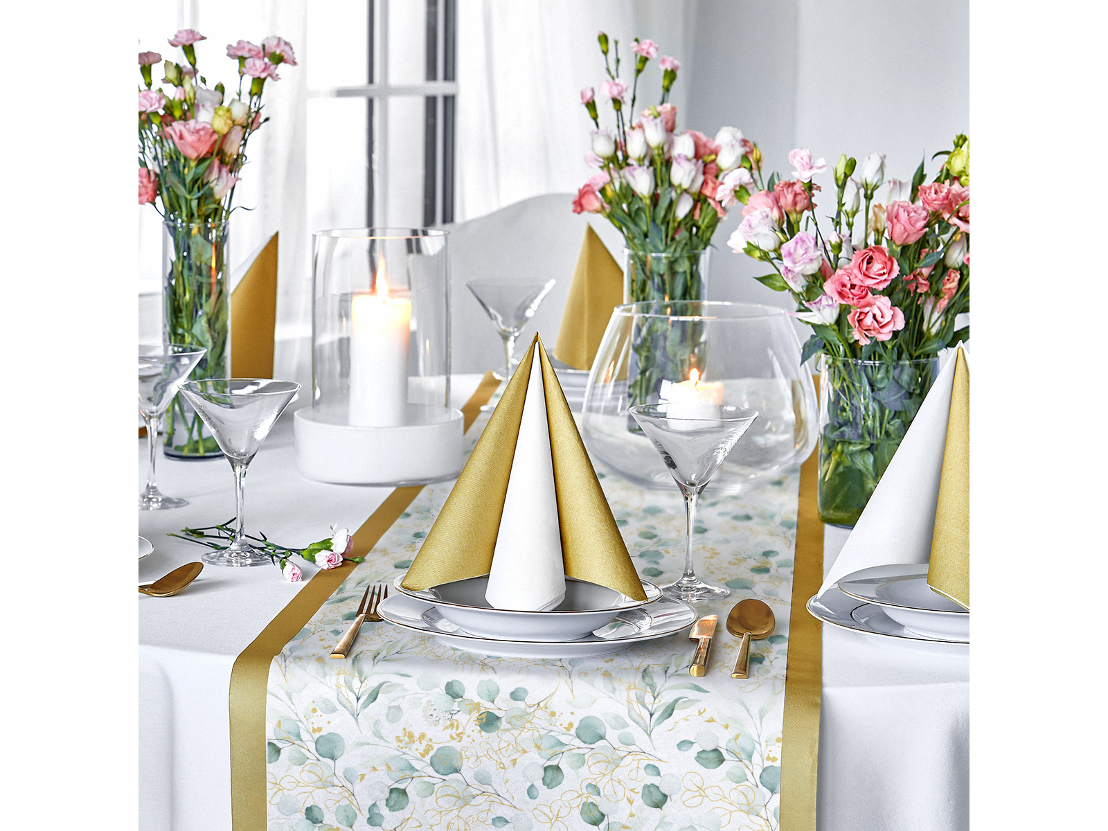 Traversă decorativă pentru masă cu model de frunze – 40 cm x 5 m – 1 bucată.