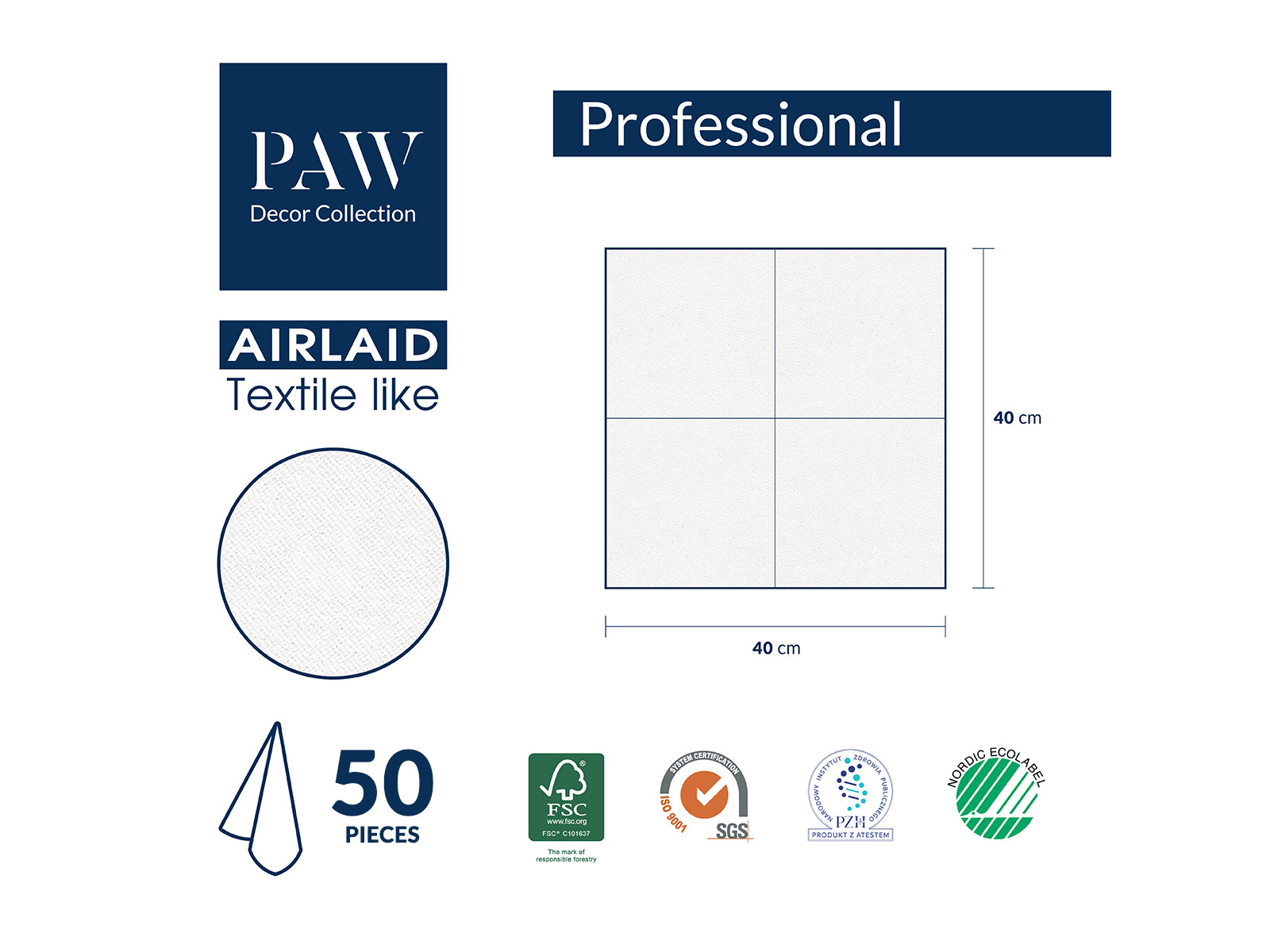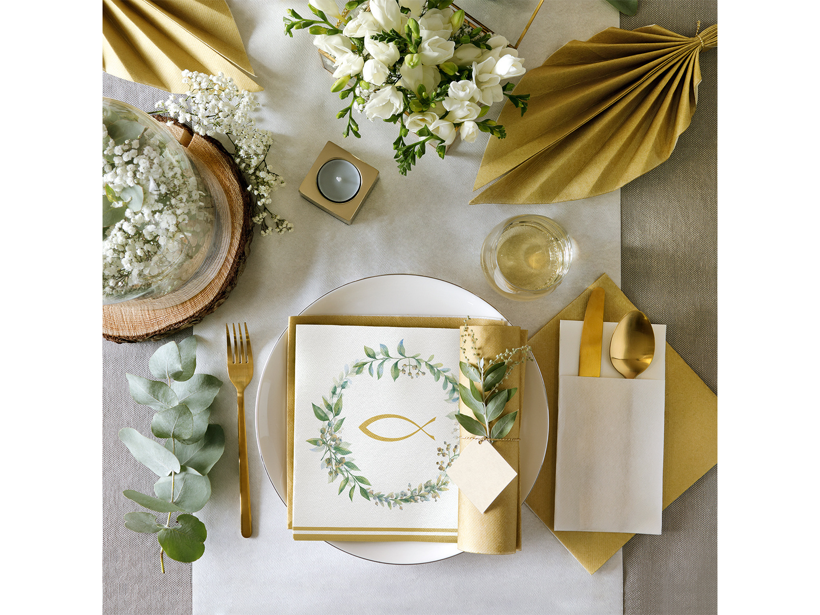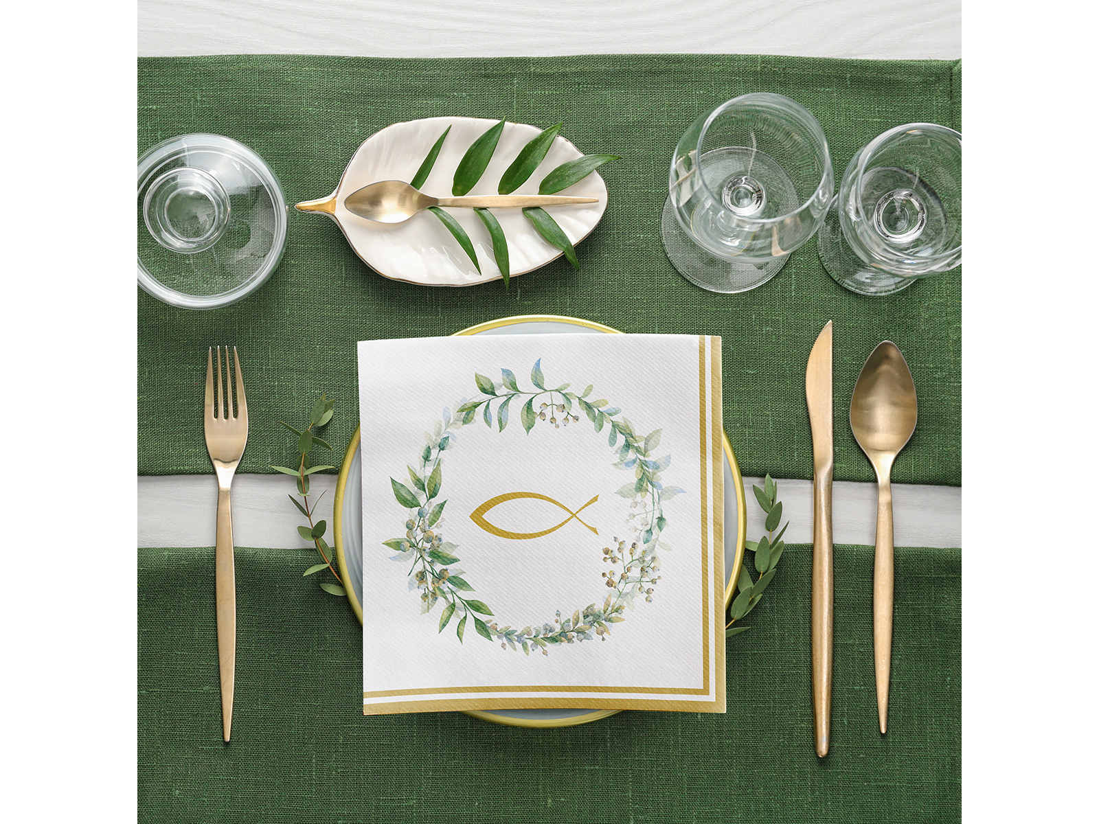 Șervețele pentru Prima Împărtășanie cu model pește și frunze – 40 cm – 50 de bucăți.