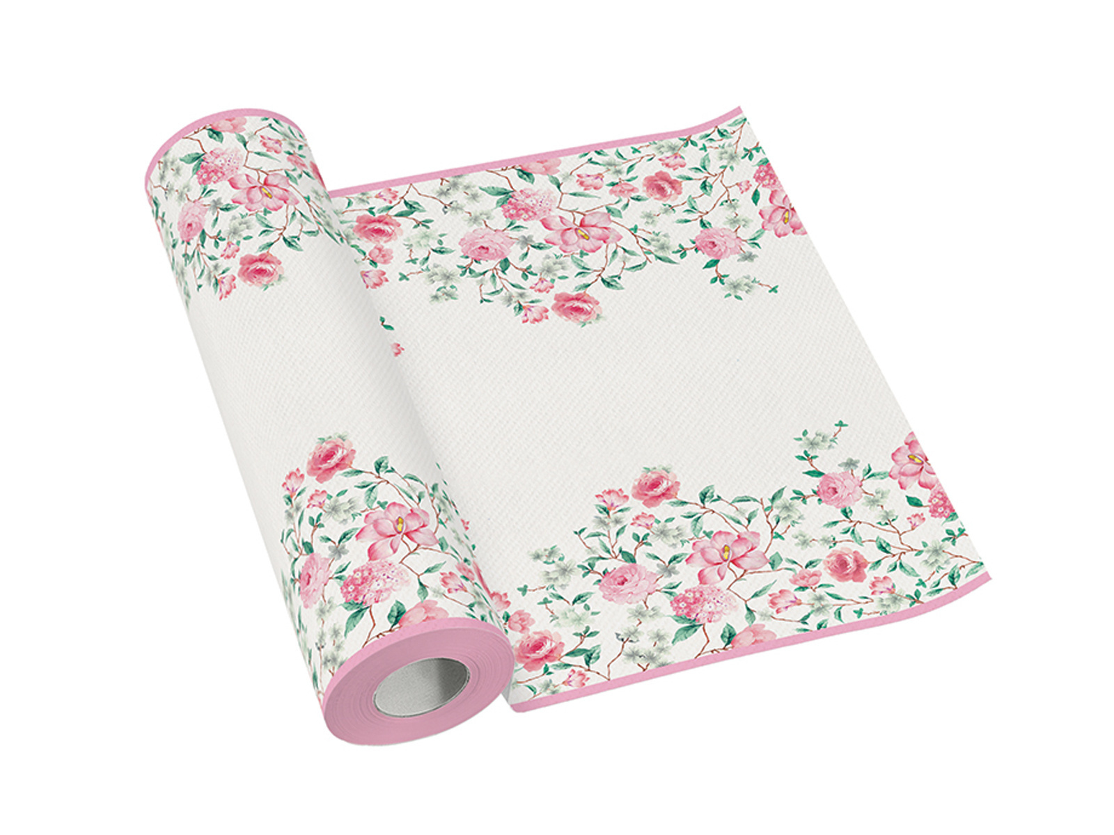 Traversă decorativă pentru masă „Flori Roz” – 40 cm x 24 m – 1 bucată.