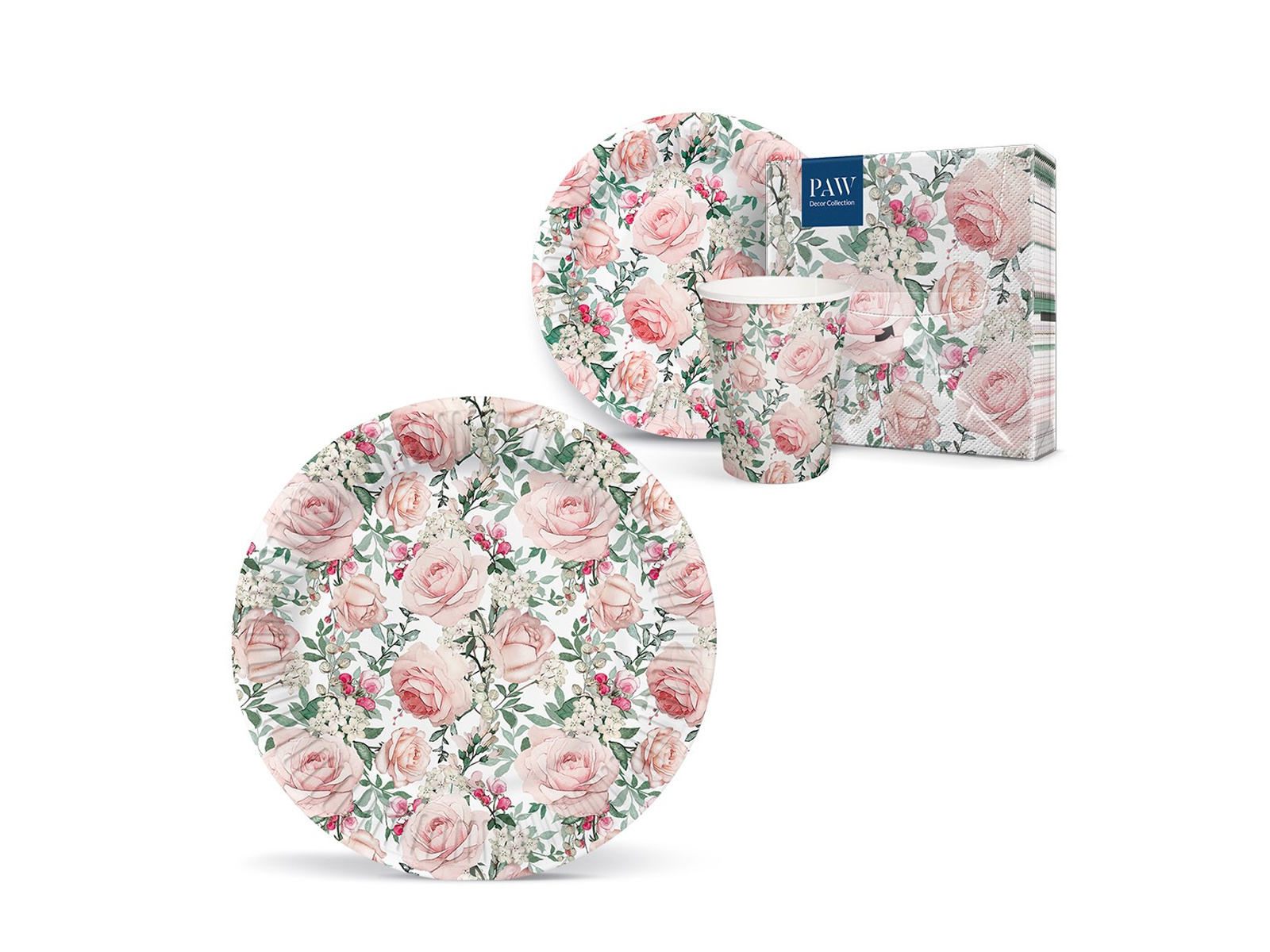 Farfurii de hârtie Trandafiri - 18 cm - 8 buc.