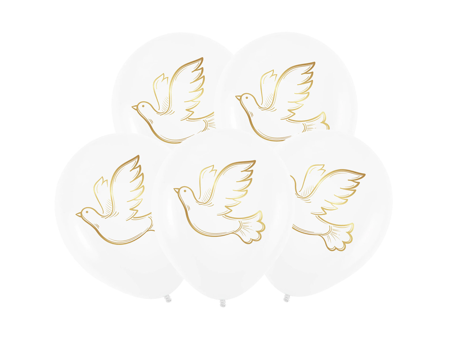 Baloane albe din latex cu porumbel - 30 cm - 5 buc.