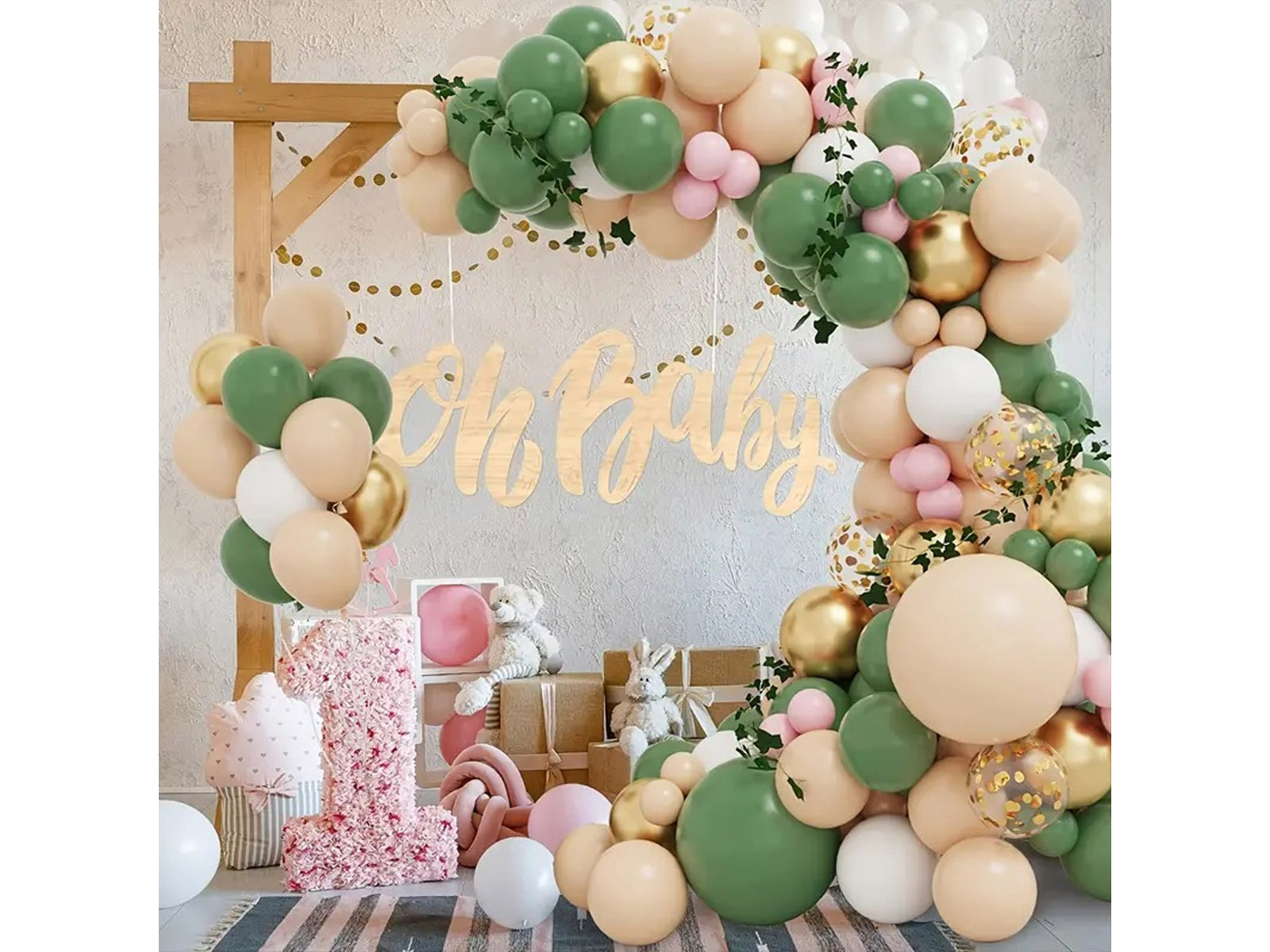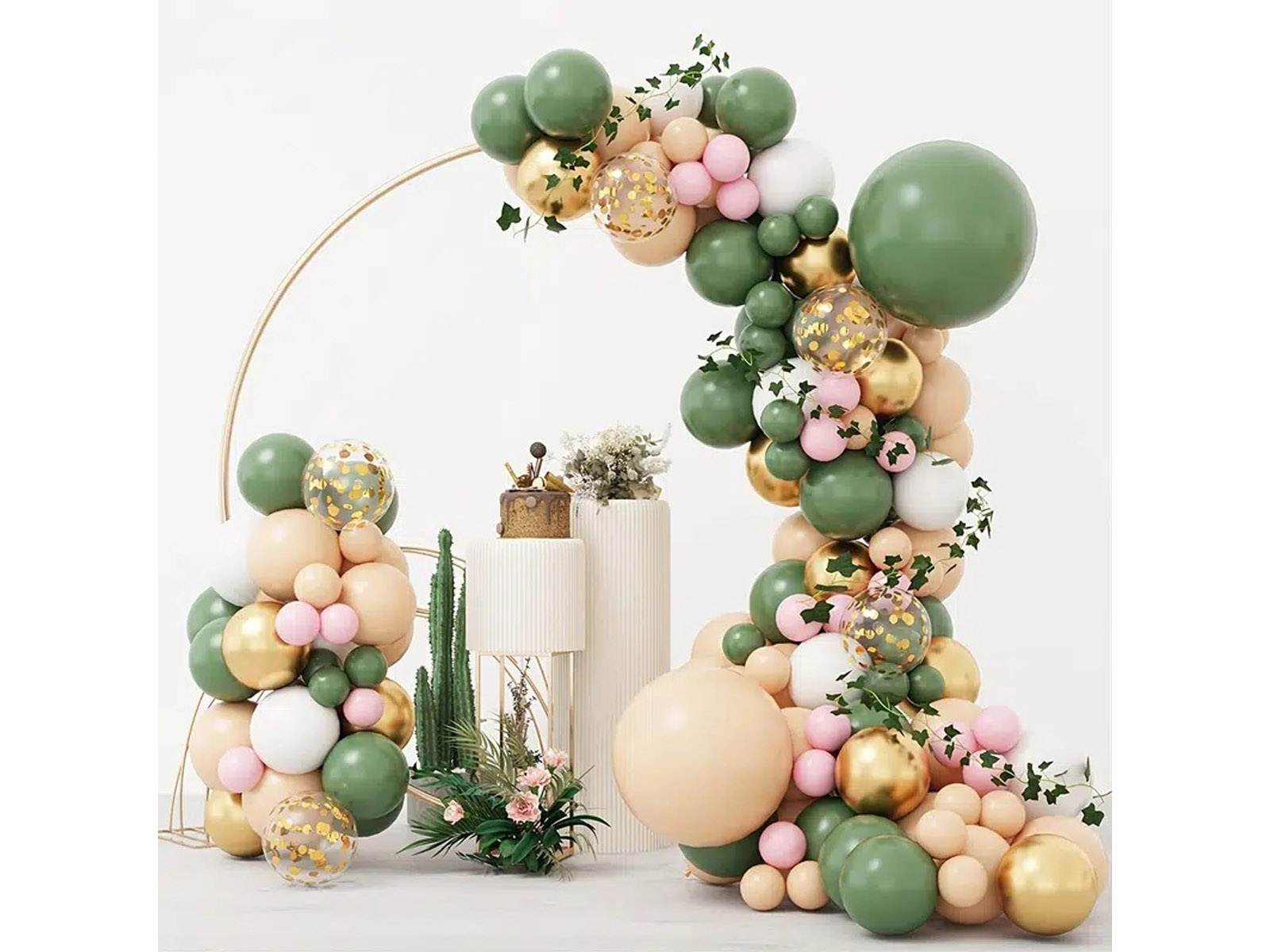 Set de baloane pentru ghirlanda de baloane verde-bej-auriu - 150 buc.