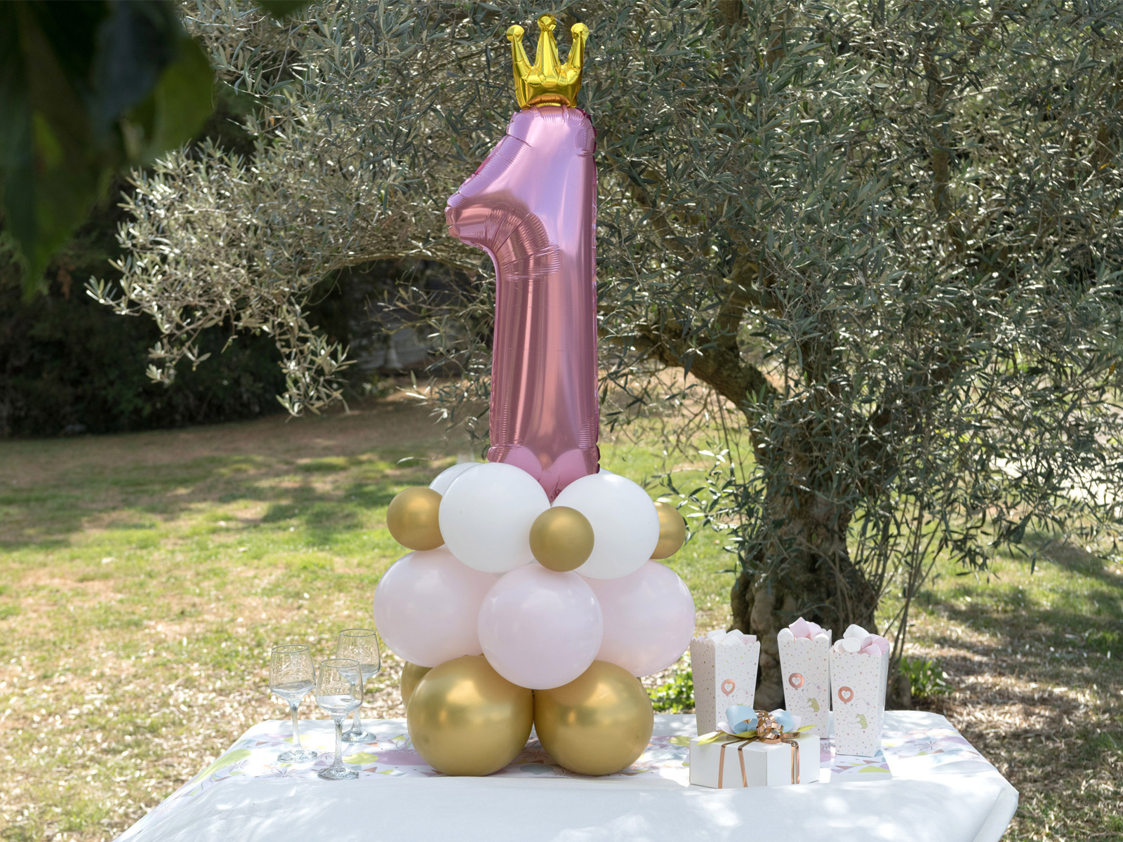 - folie numărul unu în roz cu o coroană aurie 81 cm (1 buc).),