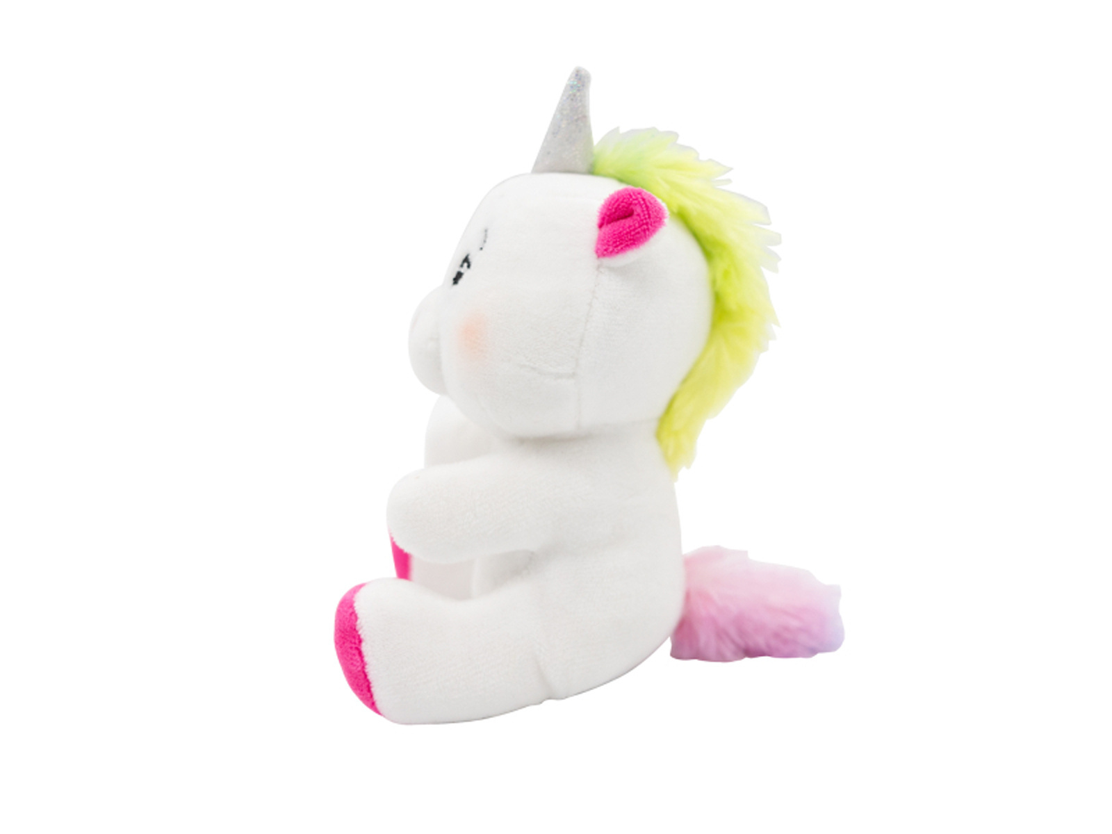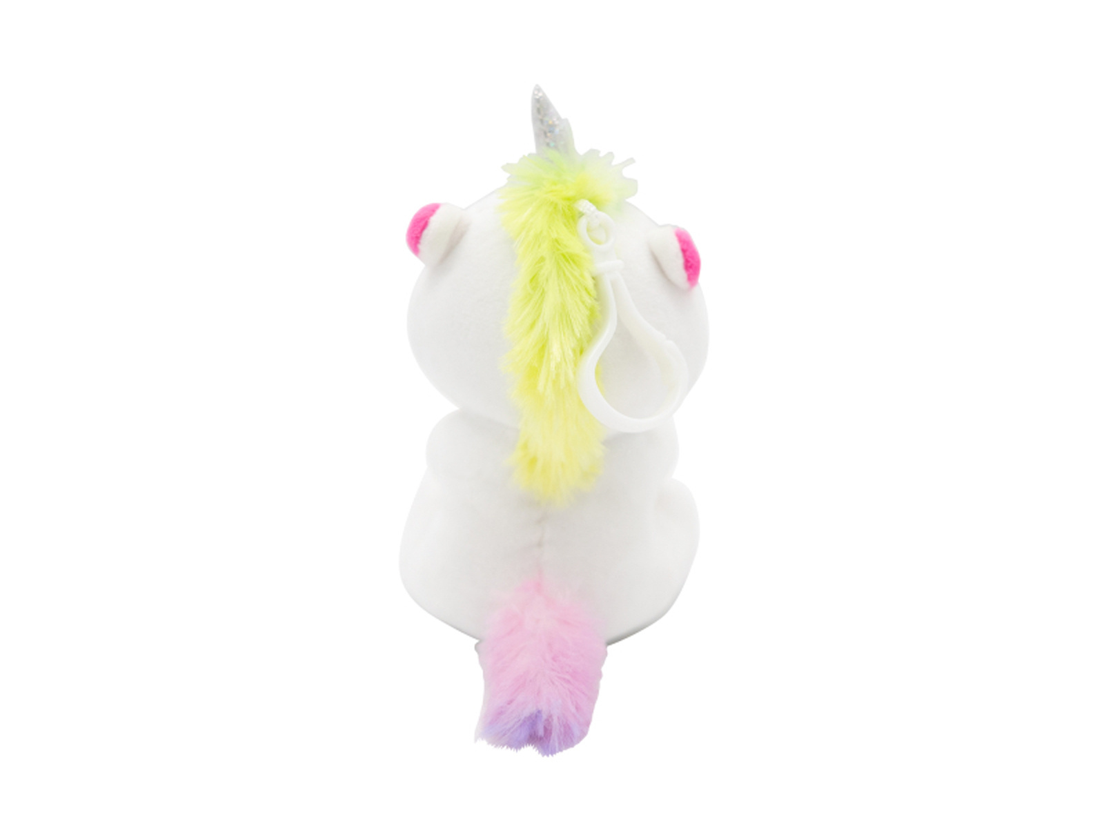 Pluszowy ciężarek w kształcie jednorożca do którego podczepiamy pęk balonów napełnionych helem. Ten ciężarek nie tylko zapobiega odlatywaniu balonów, ale także stanowi uroczą dekorację albo może być prezentem. Wysokość: 11 cm. Waga: 120 g.