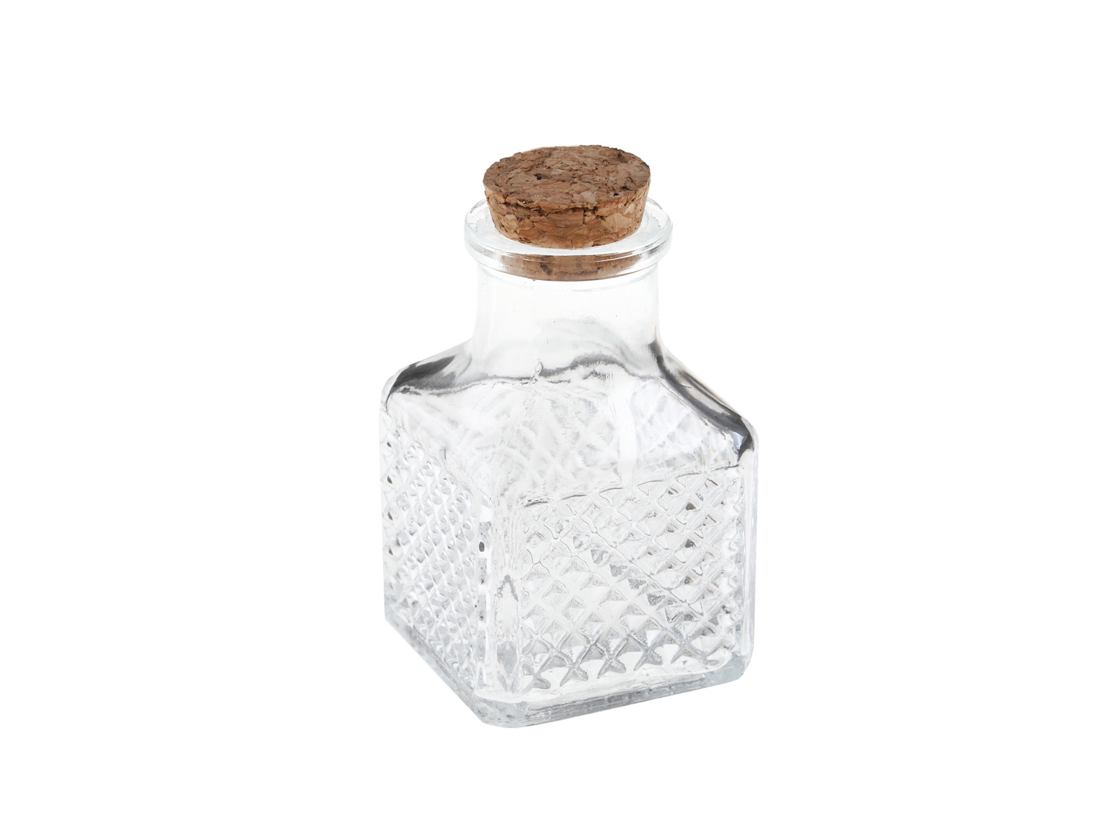 Szklana buteleczka Vintage kwadratowa z korkiem - 7 cm - 1 szt.