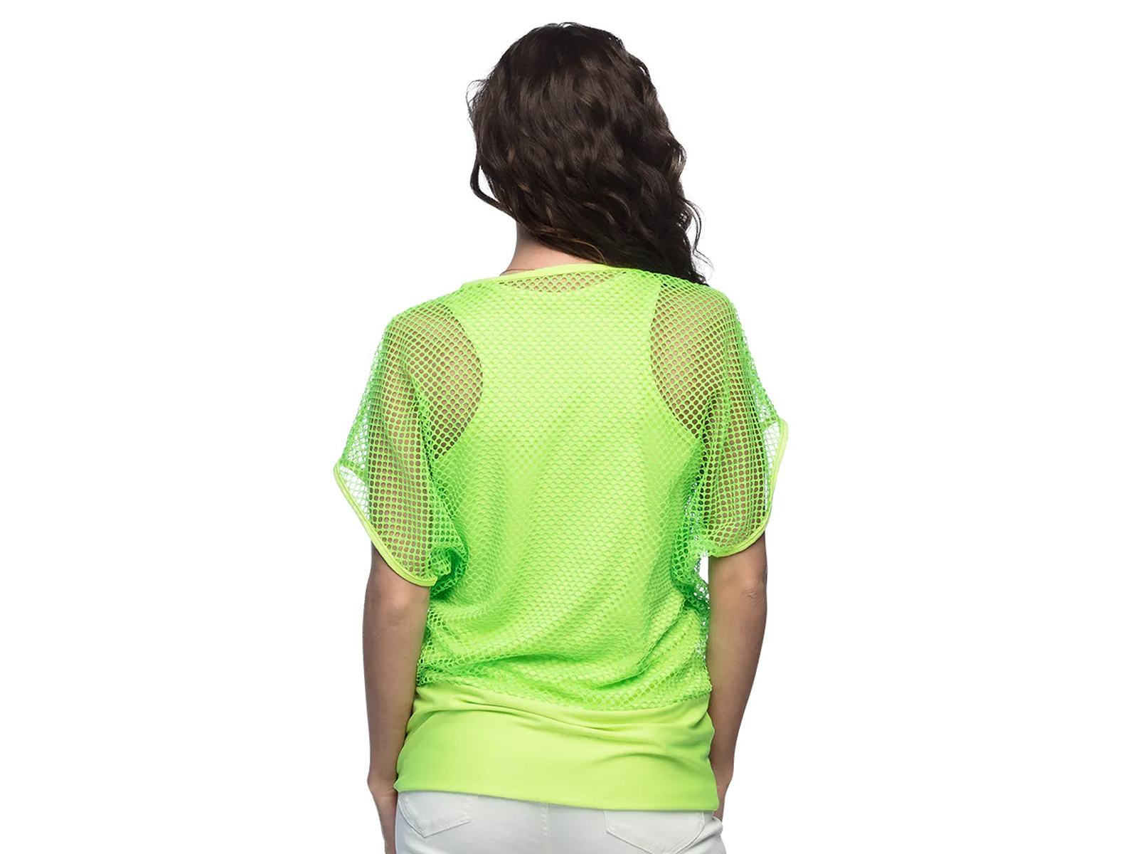 Călătorește înapoi în timp în era disco și strălucește pe ringul de dans în acest tricou cămașă de cabaret verde neon. Este alegerea perfectă pentru orice femeie care dorește să adauge puțină culoare și caracter ținutei sale de petrecere. Fabricat din poliester de înaltă calitate, garantează o purtare confortabilă pe tot parcursul nopții.
