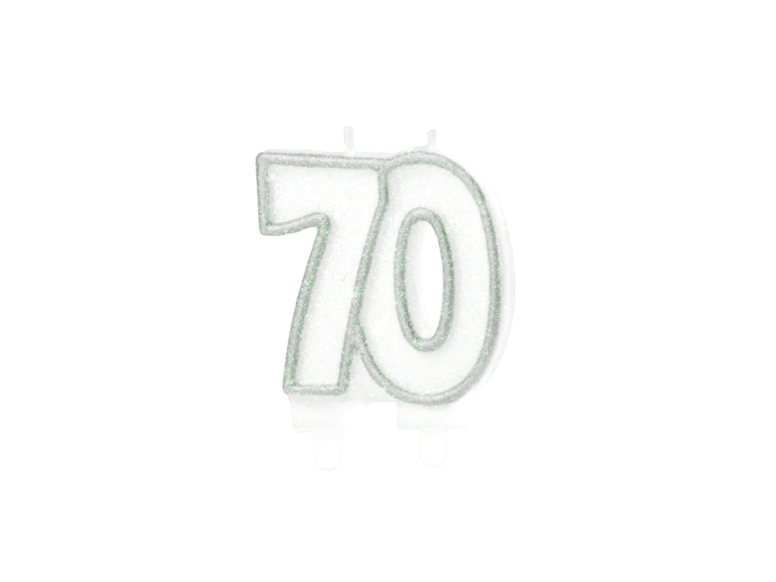 Șaptezeci de lumânări cu sclipici argintiu - 8,5 cm - 1 buc.