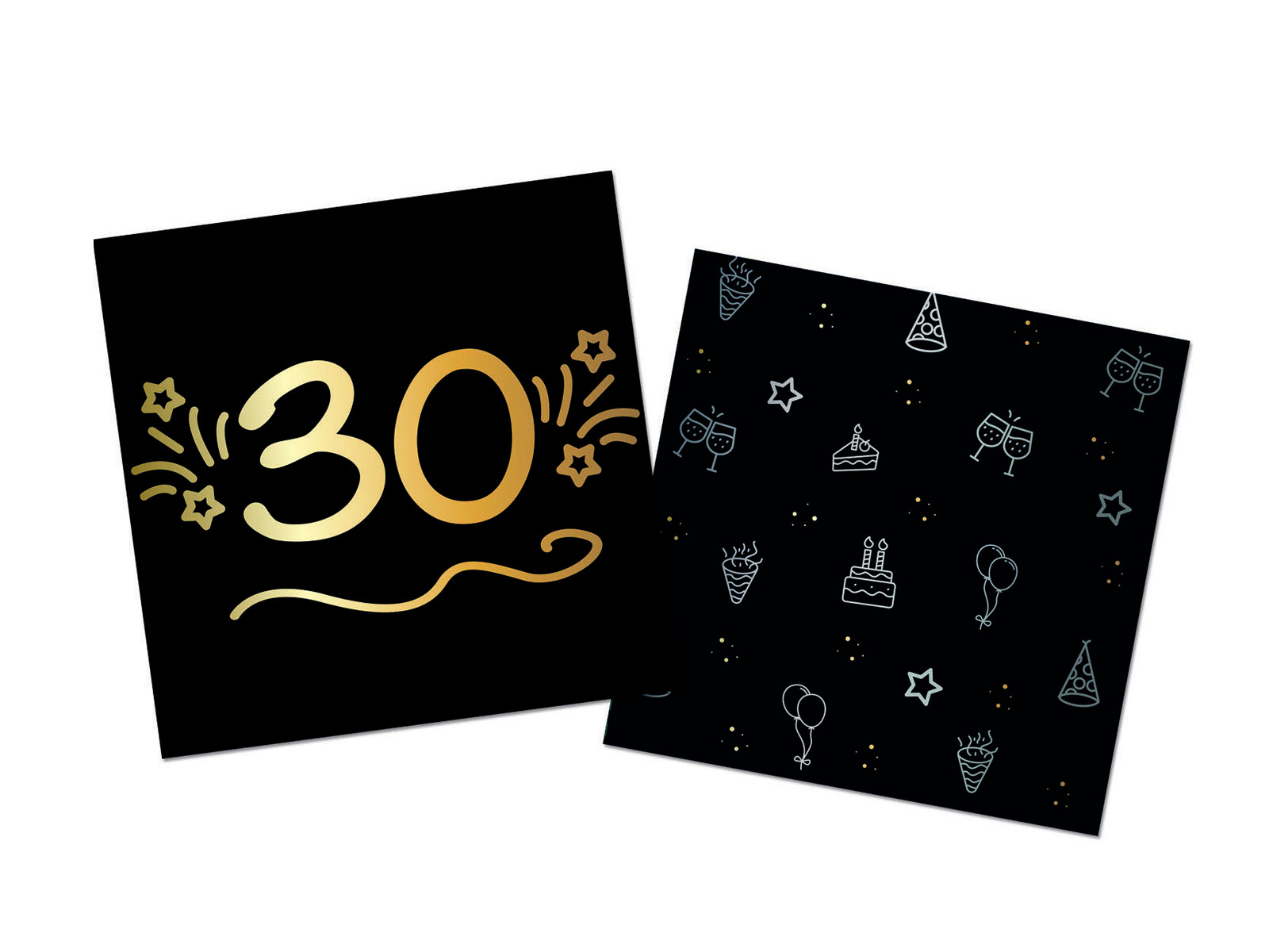 Șervețele pentru a treizecea aniversare negru - 33 cm - 16 buc.