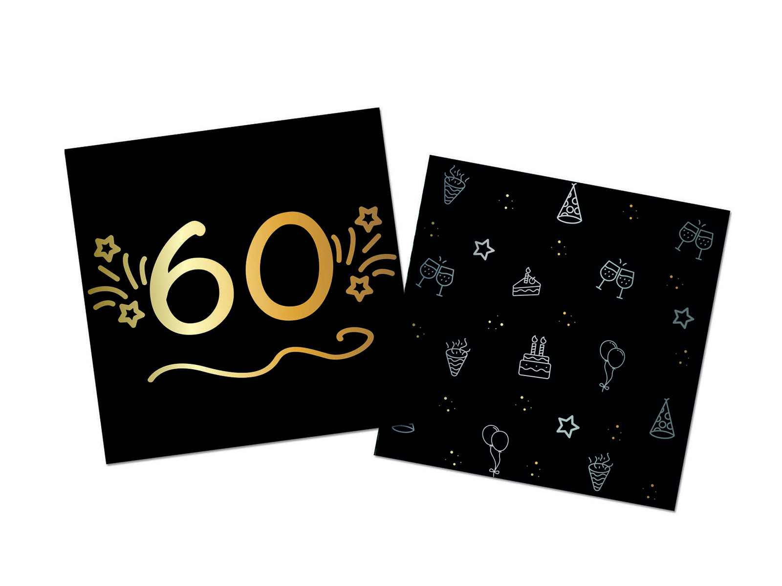Șervețele pentru a 60-a aniversare negru - 33 cm - 16 buc.