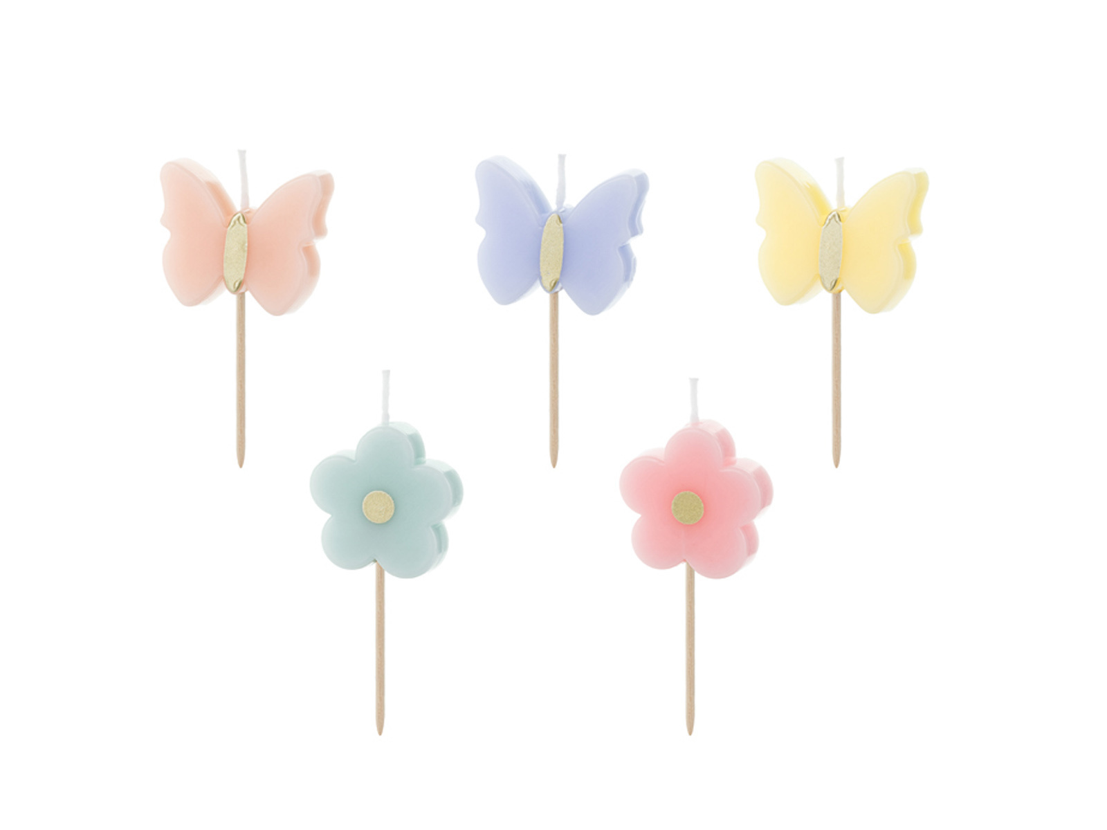 Lumânări cu fluture și culegător de flori - 5 buc.