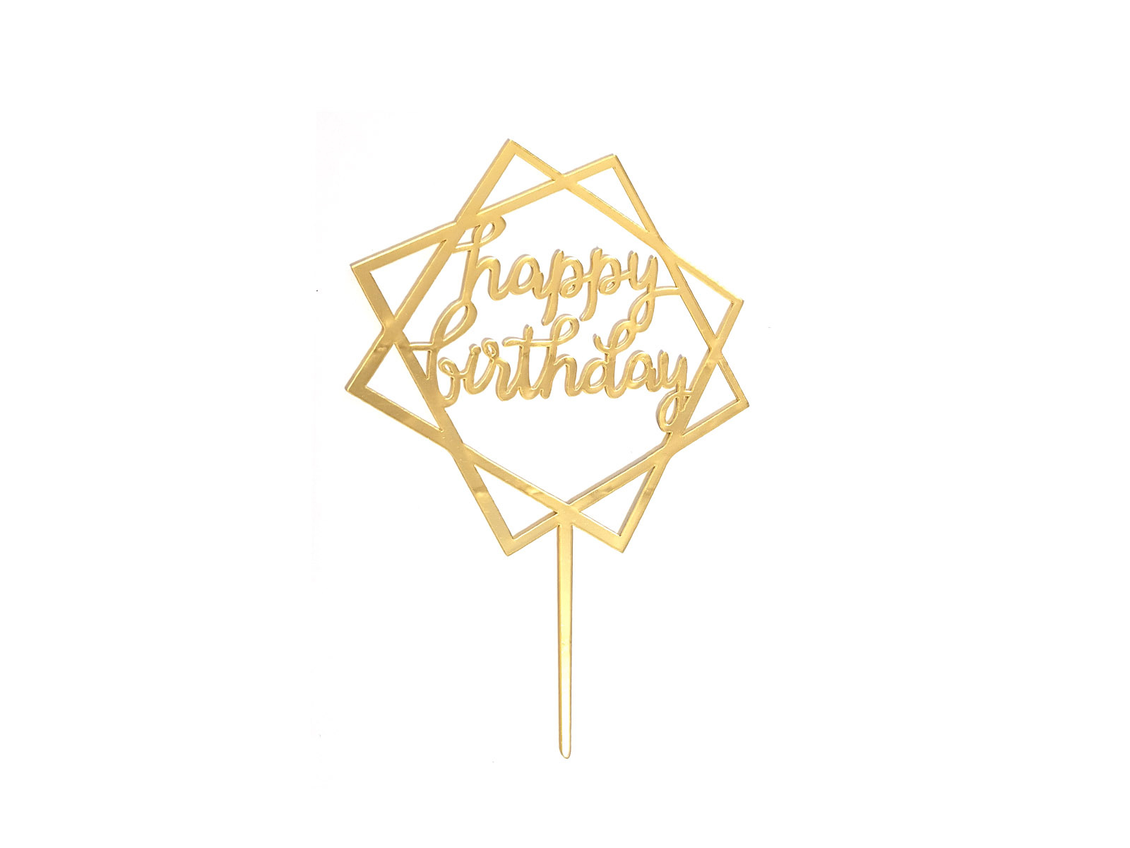 Plexiglas tort topper Happy Birthday aur - 1 buc.