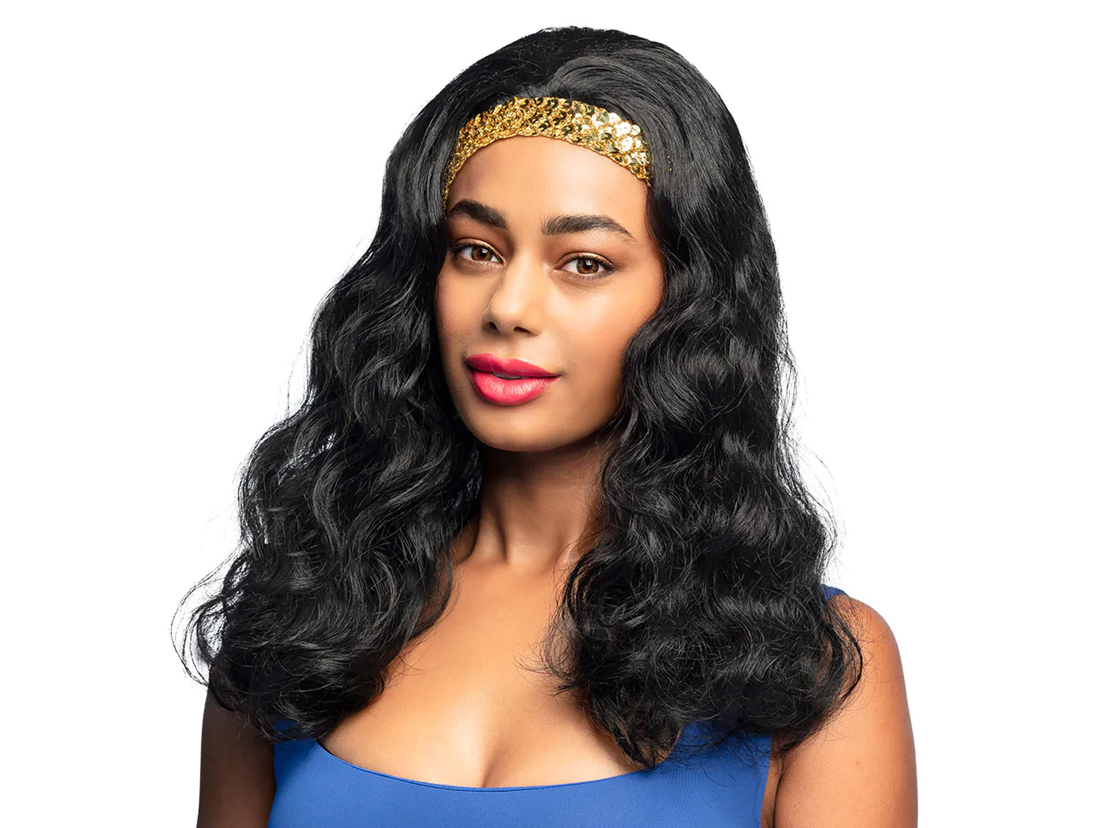 Transformă-te într-o super eroină invincibilă cu peruca noastră perucă neagră decorate cu o bandă de aur! Accesoriul perfect pentru costumul tău pentru a adăuga mister și forță de caracter. Este o alegere excelentă pentru carnaval, petreceri tematice sau alte ocazii speciale în care doriți să faceți o impresie de neuitat.
