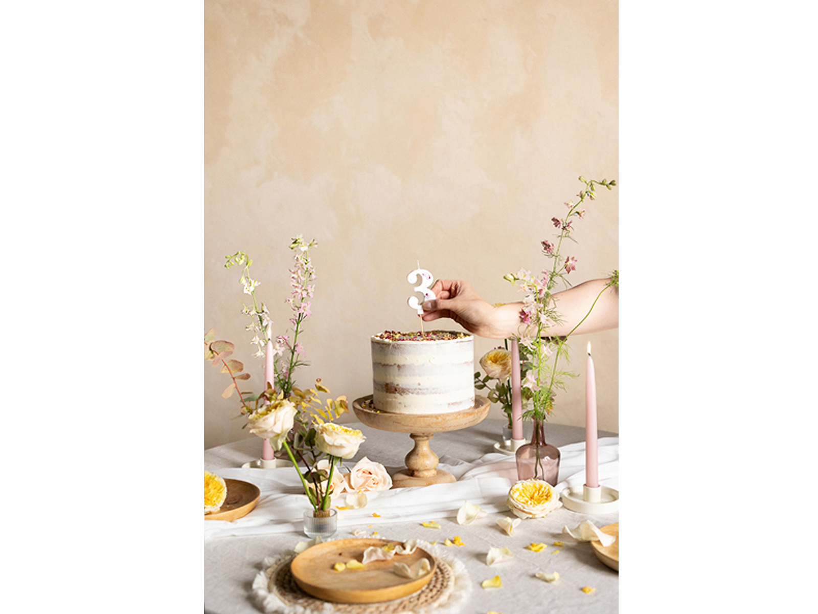 Lumânare număr trei cu petale de flori - 3 - 1 buc.