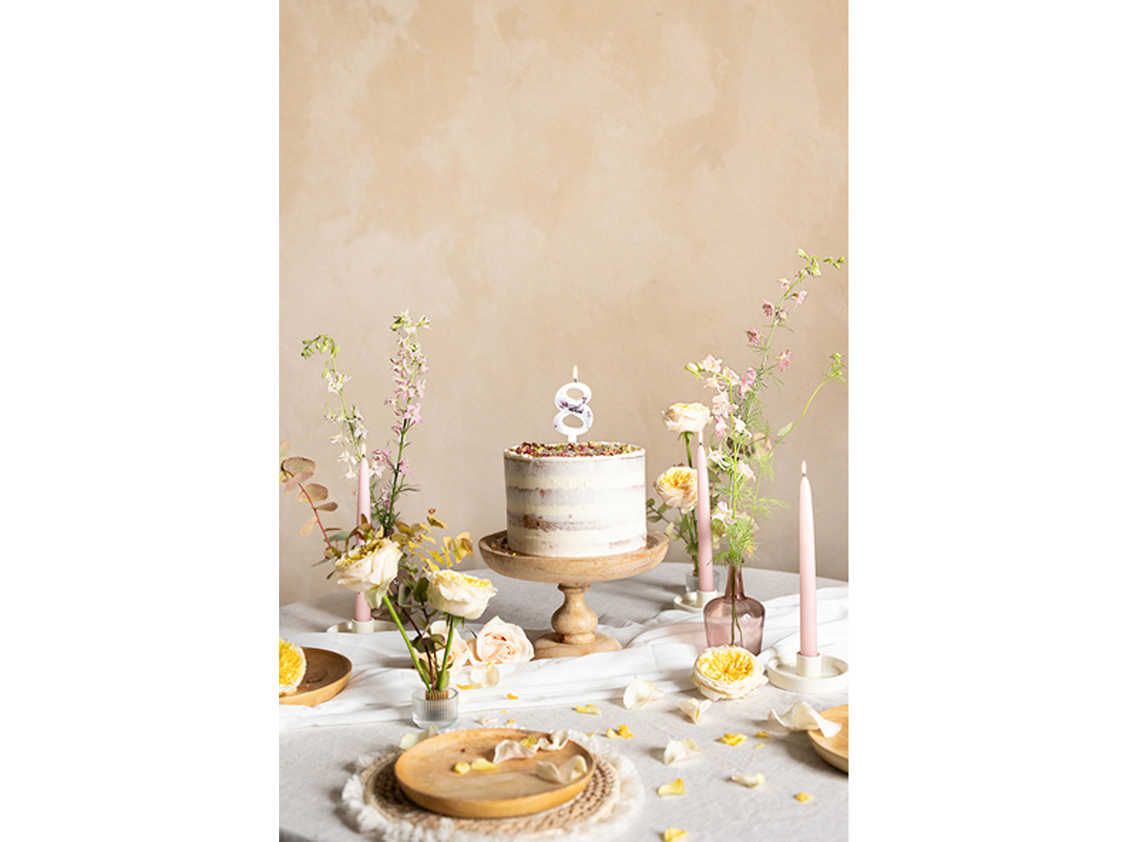 Lumânare număr opt cu petale de flori - 8 - 1 buc.