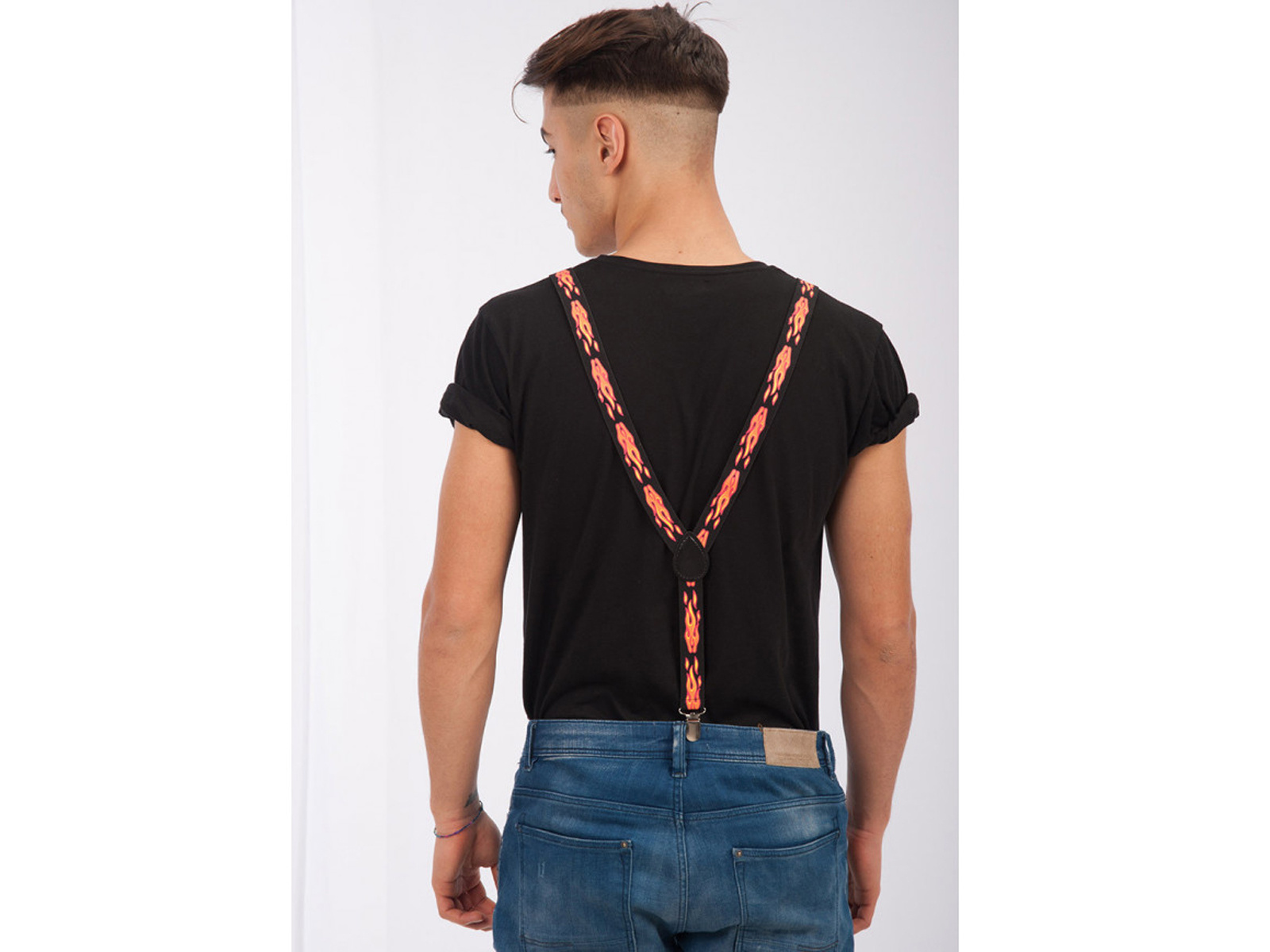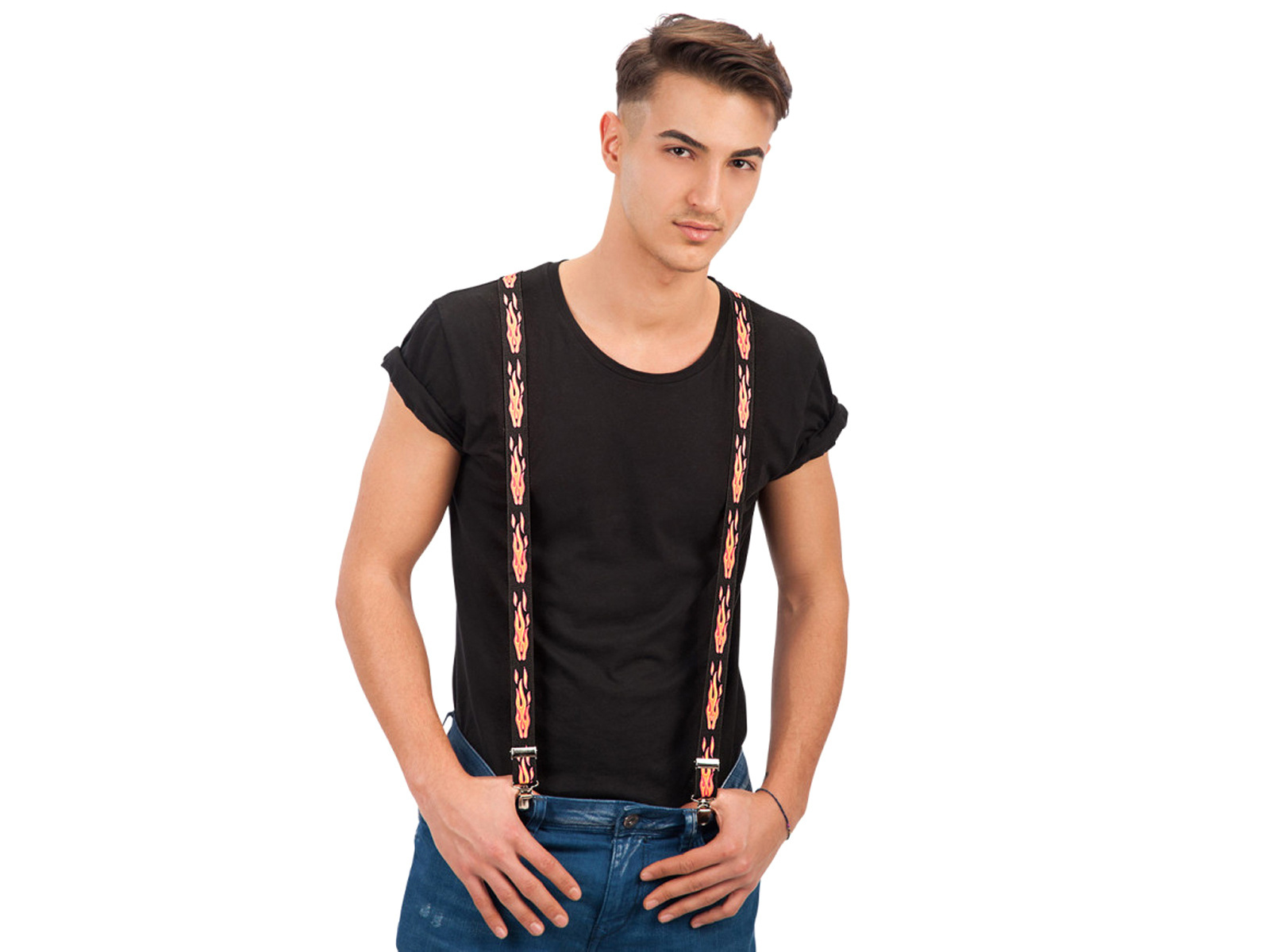 Ridicați temperatura look-ului dvs. de Halloween cu Bretele Flame. Aceste bretele izbitoare de culoare neagră sunt împodobite cu un imprimeu de flacără izbitoare care va adăuga foc oricărei ținute elegante. Ideal ca accesoriu pentru costumele inspirate de personaje horror, fantastice sau de benzi desenate.